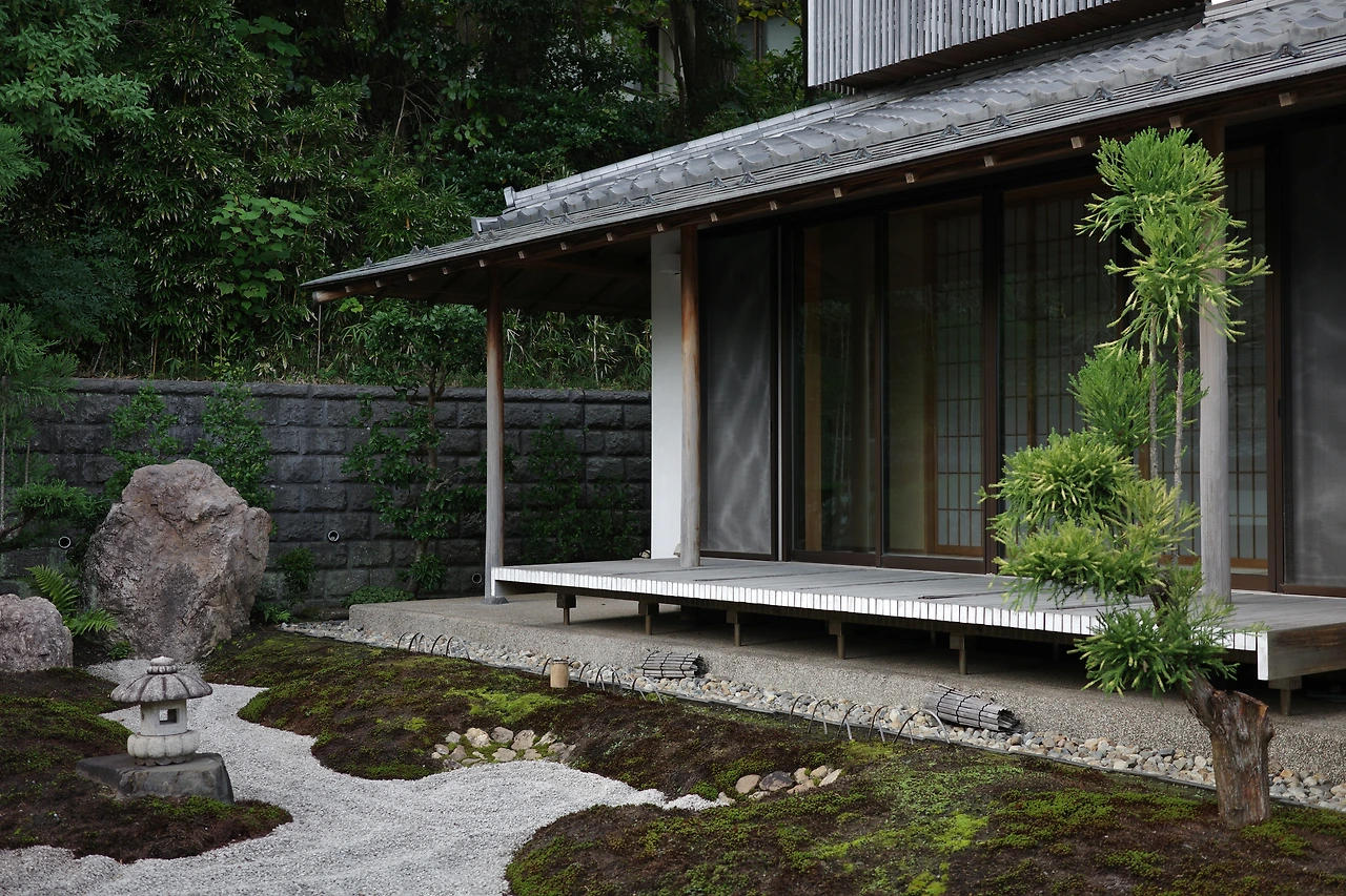 도리이 옆에 자리한 작은 서원(사경소). 일본의 정원 양식 중 하나인 '카레산스이' 형식을 띠고 있는 것이 특징이다. 연못 등 물을 사용하지 않고 돌과 모래 등으로 물가 정원을 표현한 것이 특징이라고. 비슷한 곳 중 교토의 은각사(킨카쿠지), 료안지, 텐류지 등이 참 인상 깊었는데, 그만한 규모는 아니더라도 아담하면서도 고즈넉한 분위기를 잠시나마 느낄 수 있어 좋았던 곳이었다.