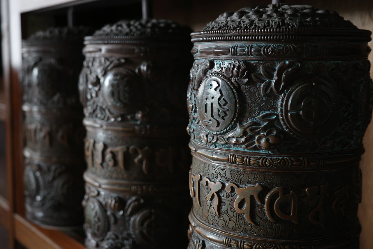 작은 법당 안을 빙 두르고 있는 돌아가는 청동제 원통. 서너 번 돌면서 실컷 즐기고(?) 나서야 만족이 돼 자리를 뜰 수 있었다(와이프와 함께였다면 한 번 돌리고 바로 끌려 나왔을 것이다).