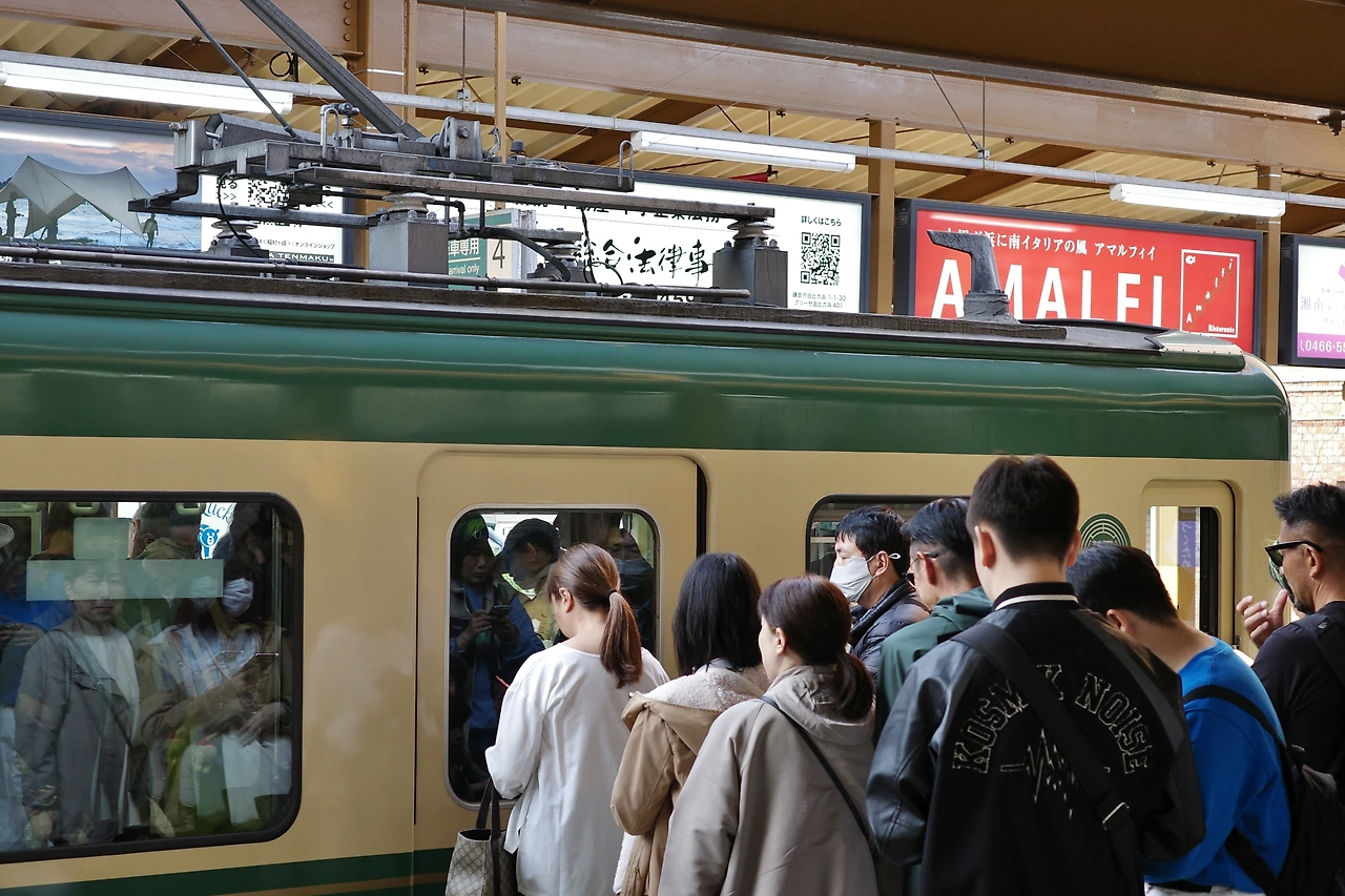 밥을 먹고 가마쿠라로 향하고자 '소부선 쾌속' 노선에 몸을 실었다. 점심시간인데도 사람으로 가득하다.