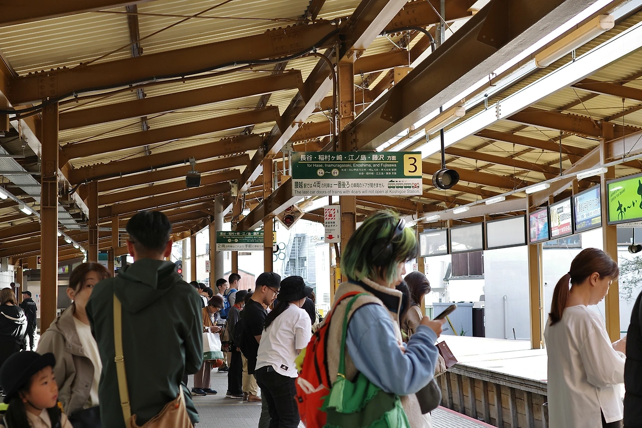 가마쿠라 역에 내려 지역철인 '에노덴' 노선으로 환승하는 곳 도착. 근교 소도시 지역 전철 특유의 향취가 느껴진다.