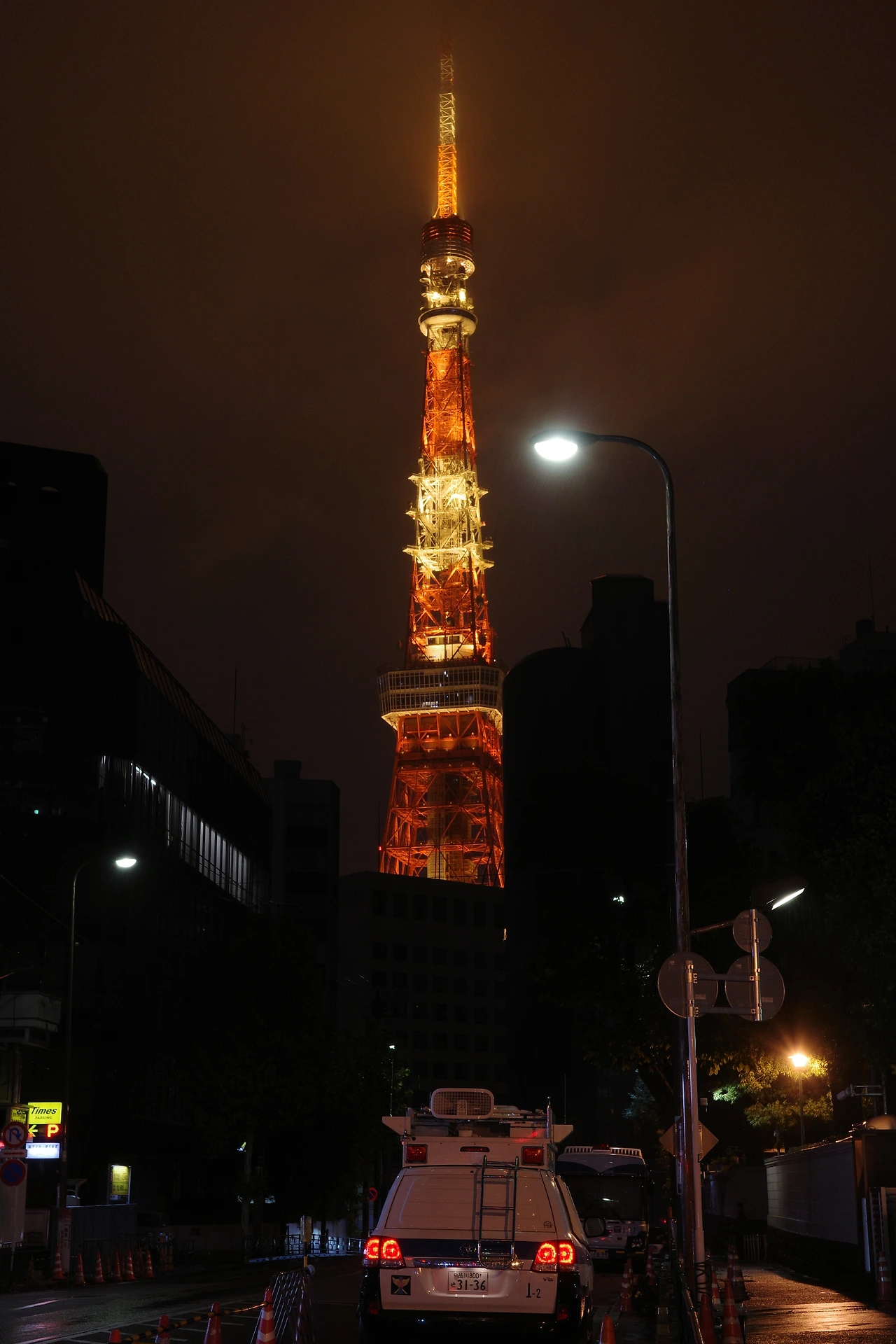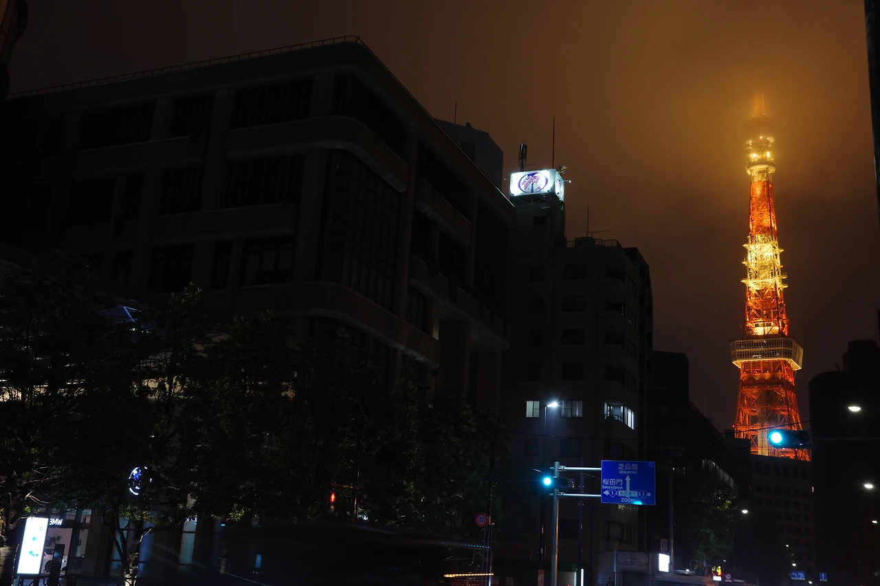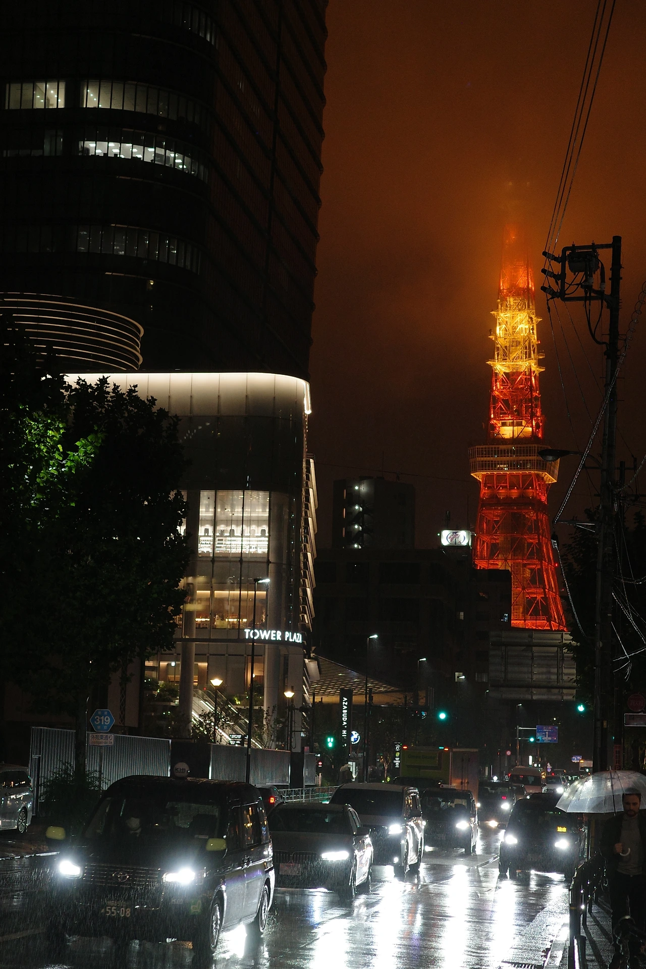 알고 보니 도쿄타워의 빛이 내리는 비에 번져 보이는 것이었다. 사진으로는 다 담기지 않았지만, 실제로 보면 정말 불이라도 난 듯 진한 주홍빛이 하늘을 뒤덮고 있는 모양새다.