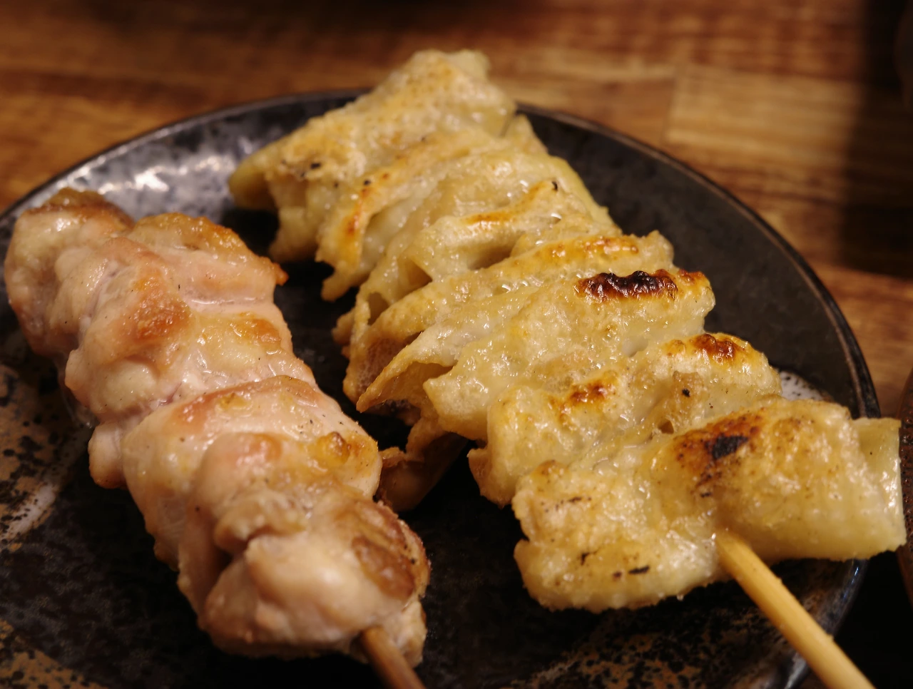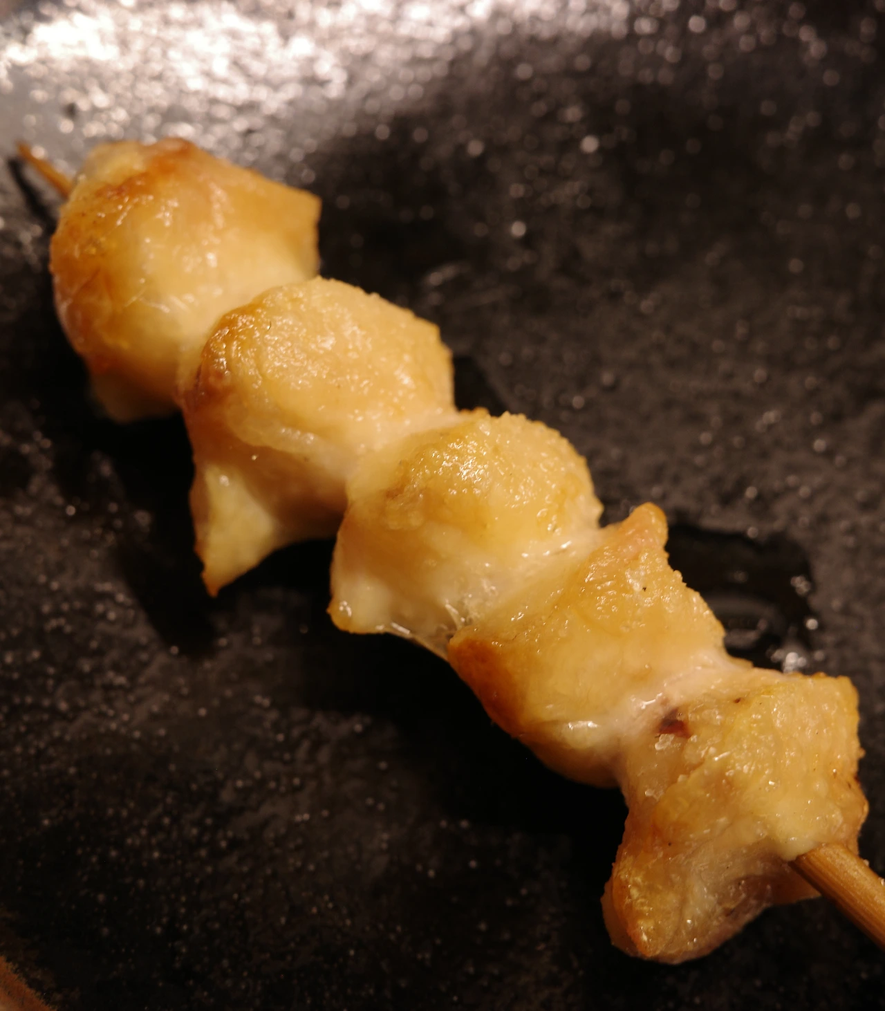 가라아게가 맛있으니 야키토리도 몇 점 시켜주는 것이 인지상정. 오른쪽은 닭껍질인데, 저렴하고 맛도 좋아서 의외였다(가격이 잘 기억이 안 나지만 120엔가량이었던 것 같다).