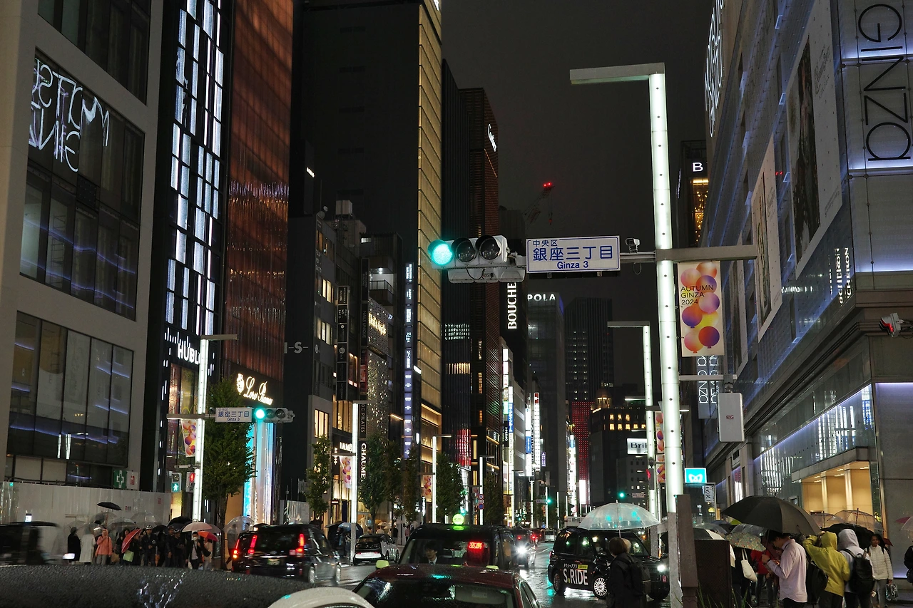 비가 추적추적 오는 긴자. 아직 오후 5시 11분 밖에 안 됐지만 겨울이라 이르게 진 해 + 우중충한 날씨가 겹치며 밤이 빨리 찾아왔다.