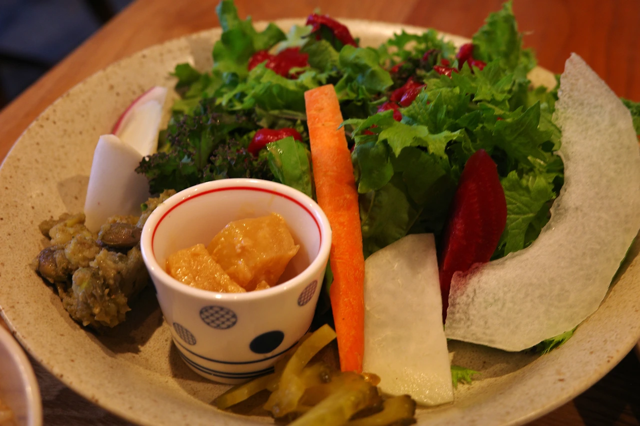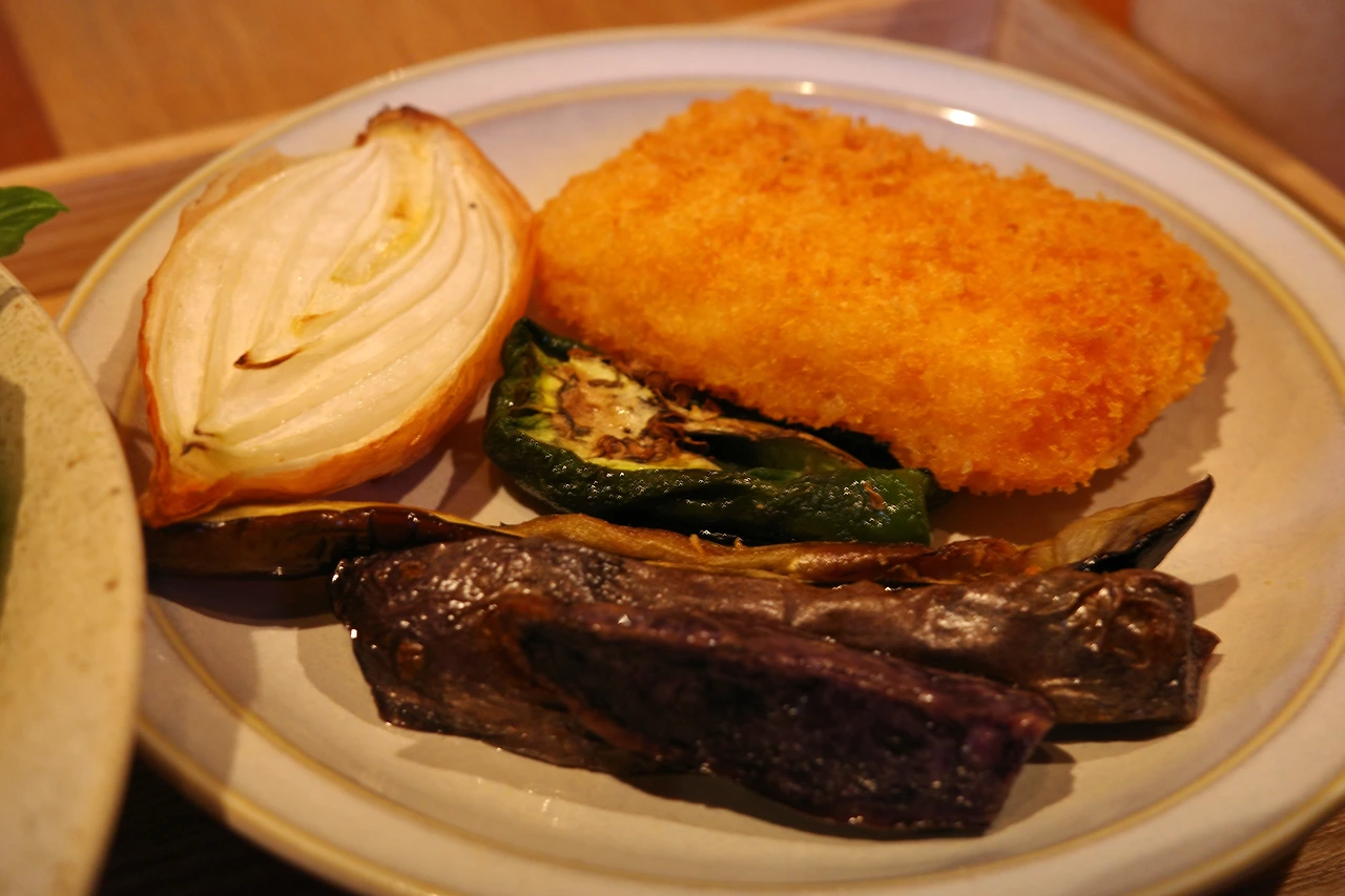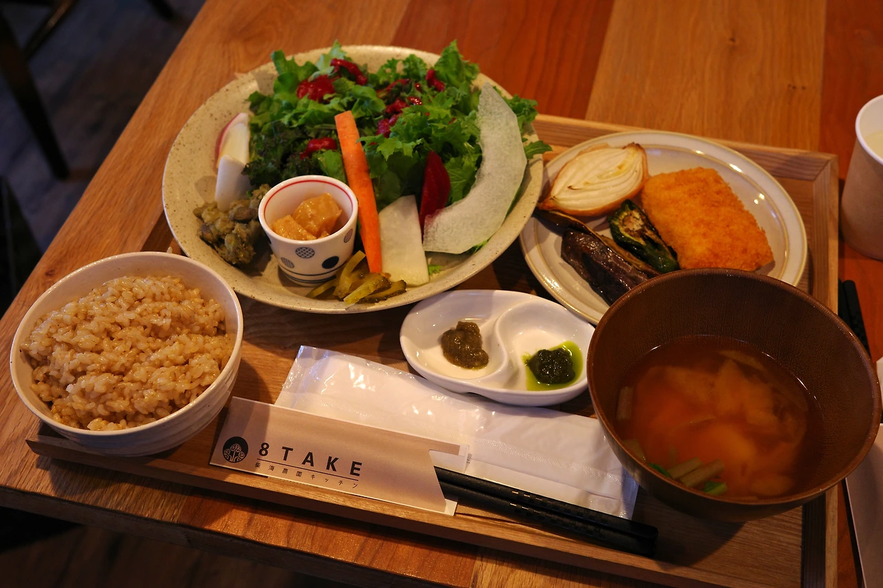그리고 오늘의 하이라이트인 에비카츠. 구운 야채들과 함께 제공되는데, 사실 다른 에비카츠 대비 두껍다거나 맛이 특별하진 않지만, 집에서 엄마가 만들어주신 느낌이라 그리 나쁘지는 않았다. 가격은 1550엔으로 다소 높지만, 신선한 야채 기반 가정식을 먹을 수 있는 곳인 만큼 여행 중 건강한 한 끼를 먹고 싶다면 들러보시길.
