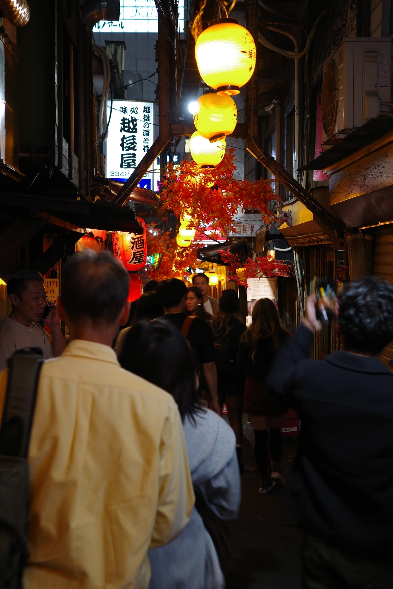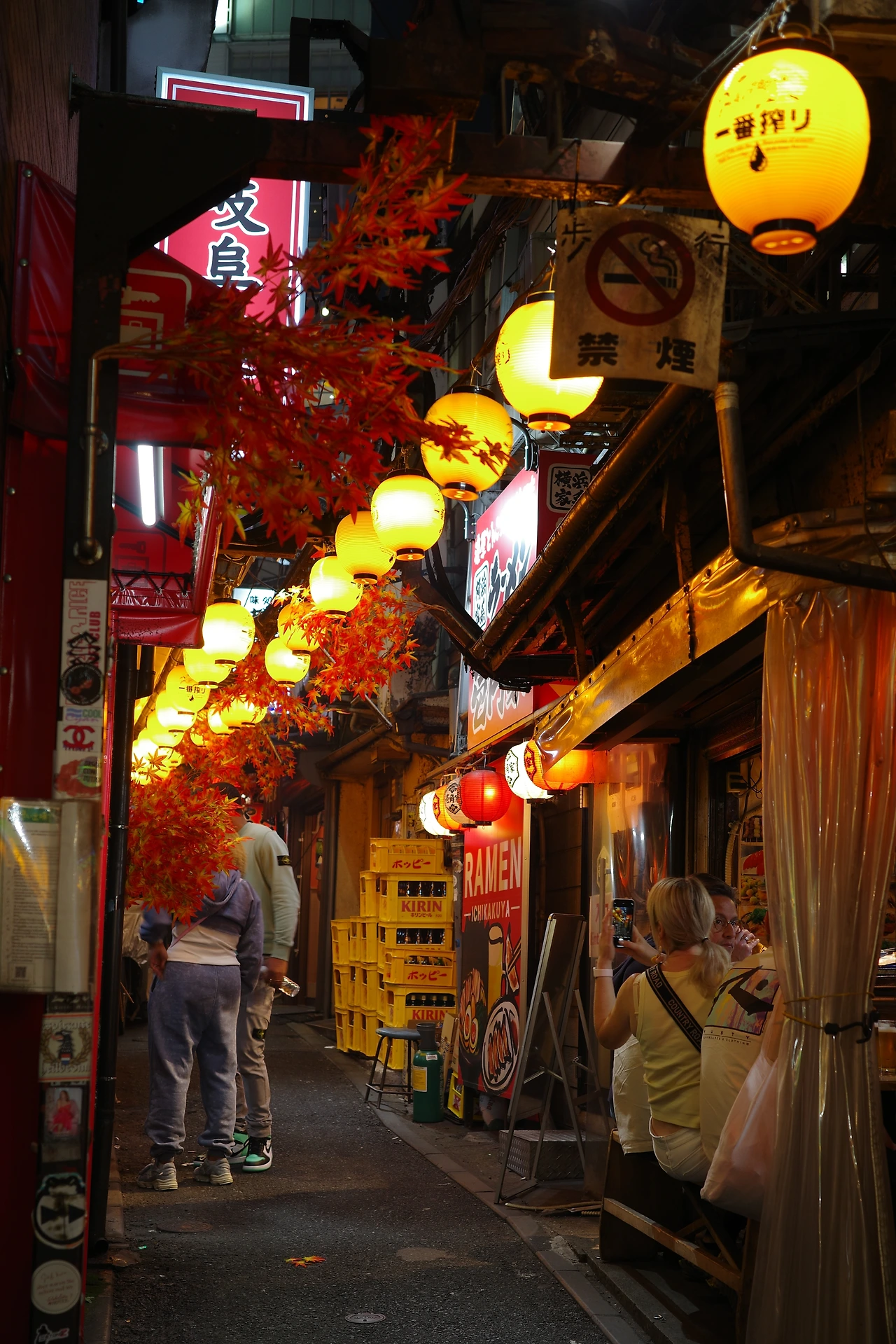 생각보다는 뭐가 없지만, 홍등과 단풍나무 잎(모조품)이 길게 늘어서 나름의 분위기가 있다. 비좁은 골목을 오가는 사람들이 꽤 된다.