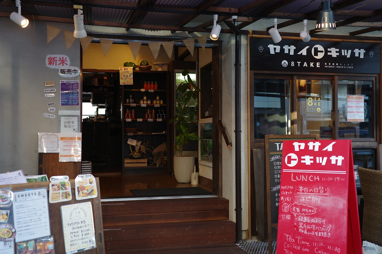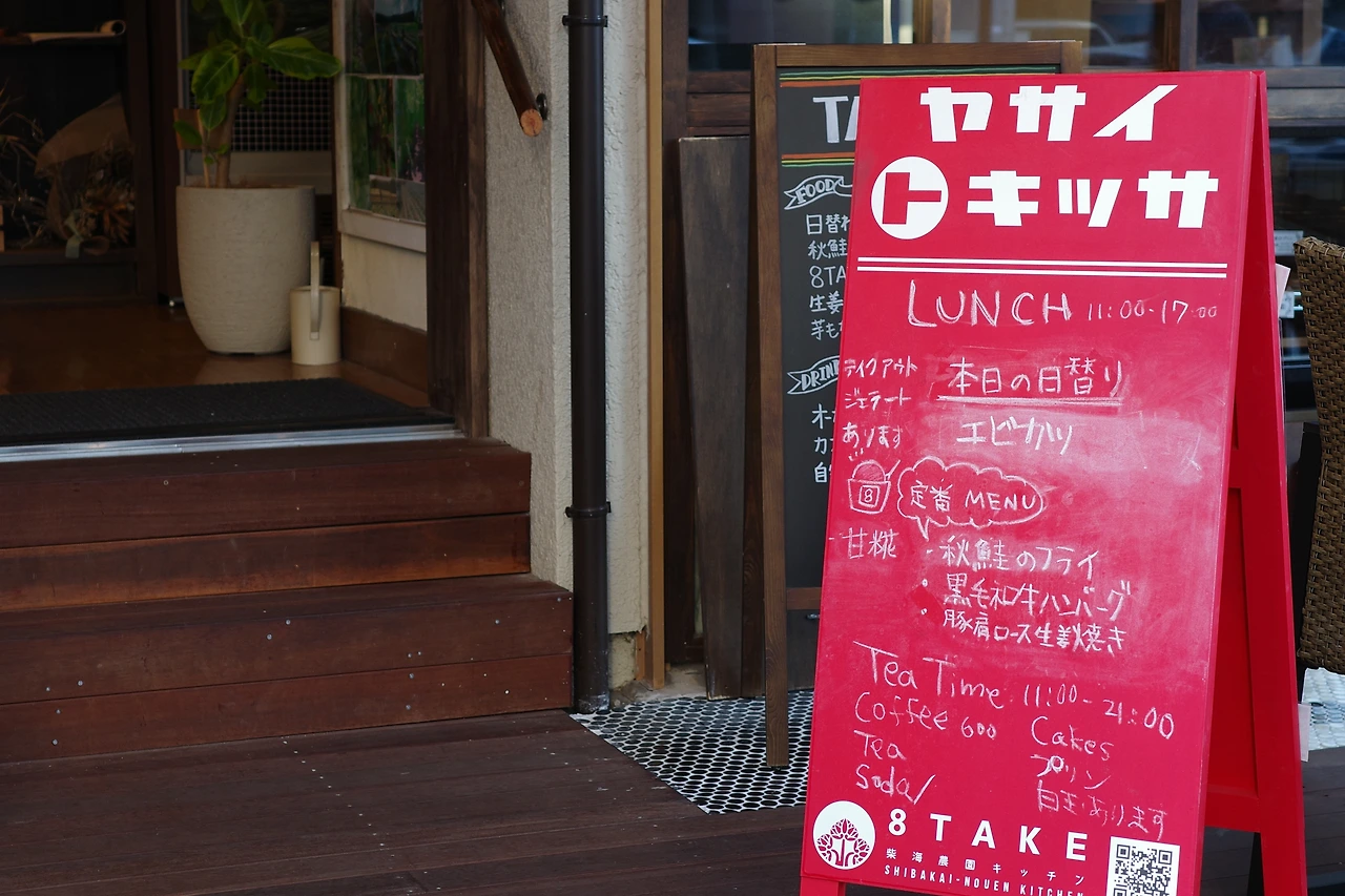 20여 분 간의 기다림 끝에 등장한 에비카츠 정식. 알고 보니 이곳은 치바현의 '시바카이 농원'에서 직접 기른 작물들을 재료로 운영되는 곳이라고. 그래서인지 입구에 다양한 채소들과 이를 기반으로 만든 상품들도 판매하고 있다. 한국에서는 좀체 보기 어려운 스타일의 식당.