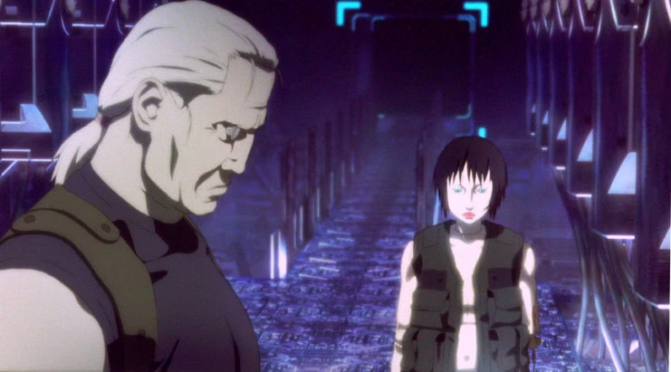 하지만 단지 바토가 스포트라이트를 받았다는 사실에만 열광하는 것은 아니다. 그의 어깨에 내려앉은 과제가 전작의 쿠사나기만큼이나, 때로 그 이상으로 무거운 만큼 그의 역할, 그리고 이 영화가 갖는 의미가 결코 가볍지 않다는 점이 멋지다는 것이다. 그리고 이는 바토가 전작에서 파트너였던 쿠사나기 소령을 잃게 된 후유증으로 한층 과묵하고 표정의 변화가 없는 무미건조한 인물이 되어 버렸기 때문이기도 하지만, <이노센스>를 관통하는 질문이 <공각기동대>의 그것에 비해 오히려 한층 피부에 와닿는 종류의 것이라는 점 때문은 아닐까 하는 생각이 든다. (전작의 핵심 질문은 '영혼, 그리고 자아란 무엇인가'에 대한 것이었기에 보다 심오한 내용이었다는 것이 개인적인 생각이다.)