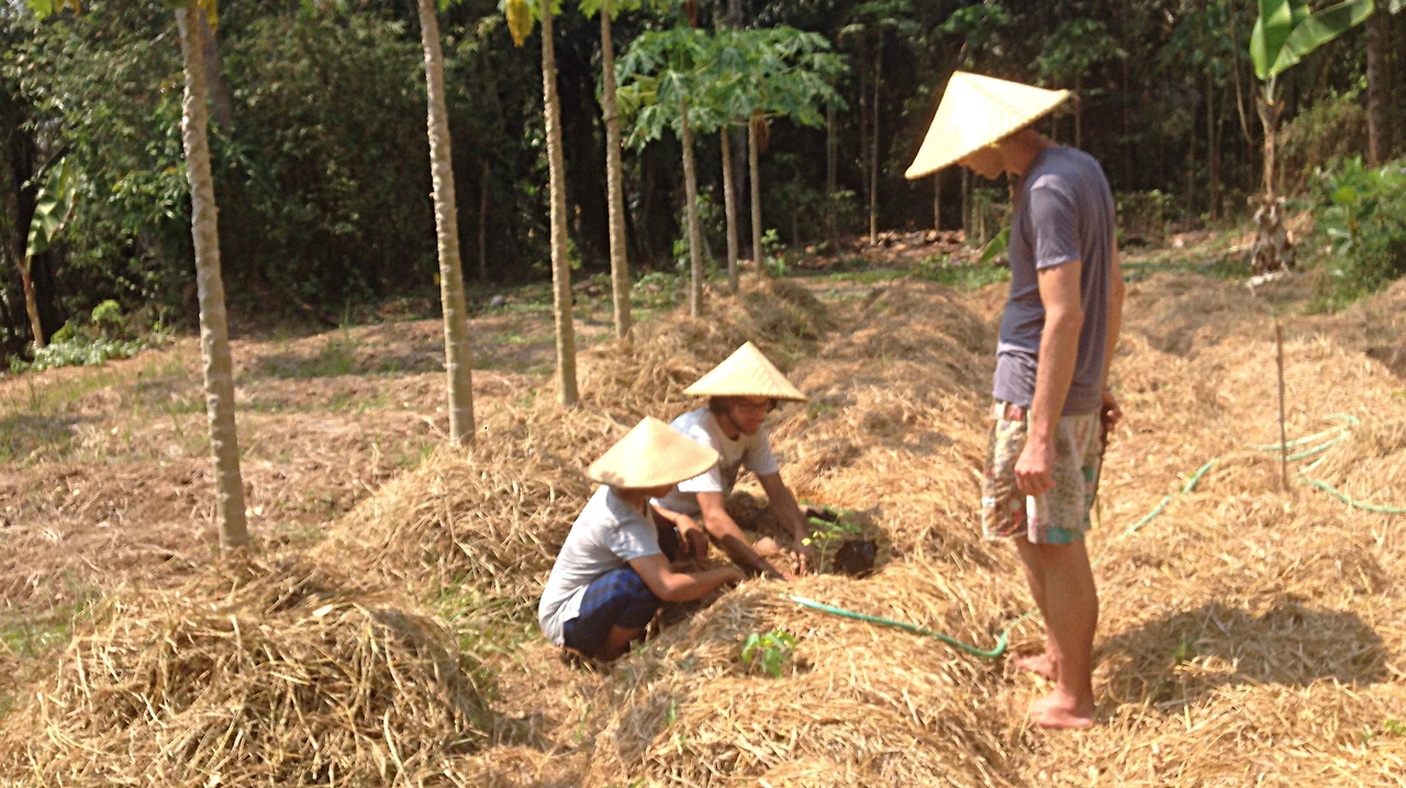 첫 작업으로 건초로 덮인 고랑에 파파야 묘목을 심었다. 발리에서 흔하고 흔한 것 중 하나가 파파야 나무다. 농장에서 잘 가꿔진 것들도 있지만 길 옆 빈 터에 제멋대로 자란 것들도 많다. 아무 데나 아무거나 심으면 잘 자랄 것 같지만, 건기(乾期) 끝자락의 발리 기후는 농부에게 굉장히 가혹할 정도다. 파파야 묘목 심을 구멍을 파는데 땅이 메마르고 딱딱해서 연장이 들어가지 않는다.