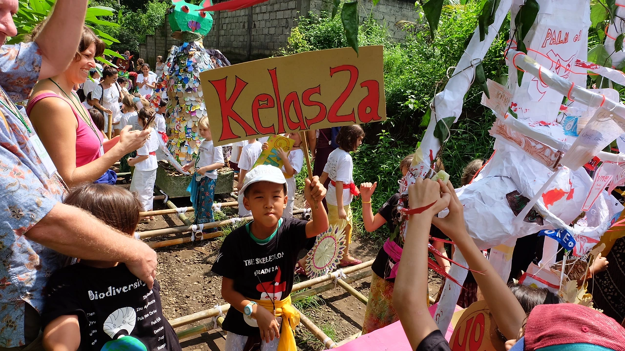 조용하던 동네가 아이들의 함성으로 들썩들썩한다. 원래의 오고오고 행진은 악귀를 물리치는 의식으로 시작되었지만, 그린스쿨 아이들의 행진은 아름다운 지구를 위협하는 불의와의 싸움이다.