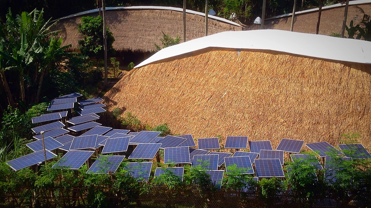 부모는 배석할 수 없기에 나는 멀찍이서 아이들의 모습을 지켜보기도 하고, 건물을 둘러보기도 했다. 학교의 심장부(Heart Of the School, HOS)라고 이름 붙은 본관에 들어서니, 그린스쿨에 들어와 있다는 게 비로소 실감이 났다. 사진으로만 보던 그 웅장한 대나무 건물이다. 대나무만으로 3층 건물을 지을 수 있다는 걸 비로소 알았다. 창밖으로 모자이크를 한 듯 태양광 패널들이 흩어져 있는 모습이 보였다. 알랑알랑(Alang Alang)이라고 부르는, 초가지붕을 닮은 전통 지붕의 색깔과 대나무 스탠드 위에 설치된 태양광 패널들이 묘하게 조화를 이룬 모습이다. 예술적이다. 선생님들의 미팅 공간도 살짝 엿봤다. 대나무 조각에 싱크탱크(Think Tank)라는 글씨가 새겨져 있었다.