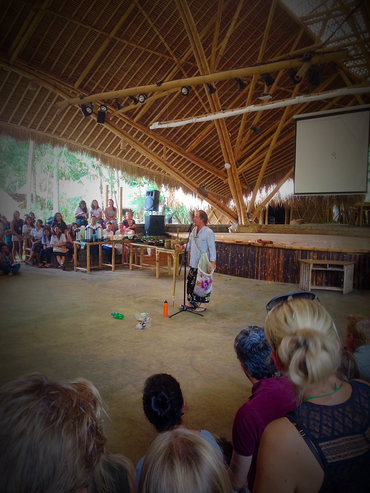 약간 어수선하고 정신없었지만, 전체적인 진행과 프로그램은 참신하고 유익했다. 고등학교의 교장(Head of High School)에 해당하는 레슬리Leslie 선생님의 연설과 티셔츠 퍼포먼스는 감동적이었다. 몸집이 좀 큰 선생님이었는데, 아이가 입을만한 작은 티셔츠를 들고 와서는 자기 몸을 꾸역꾸역 티셔츠에 집어넣었다. 옷이 찢어질 듯 아슬아슬한 모습이었지만 결국 옷을 입는 데 성공했다. 그린스쿨이라는 새로운 공동체에, 발리라는 새로운 땅에 적응하는 것이 처음에는 잘 맞지 않는 옷처럼 불편하더라도, 결국 이렇게 옷을 입었지 않나요. 많은 박수가 나왔고, 그 퍼포먼스에 내 마음에도 크게 감동이 밀려왔다.