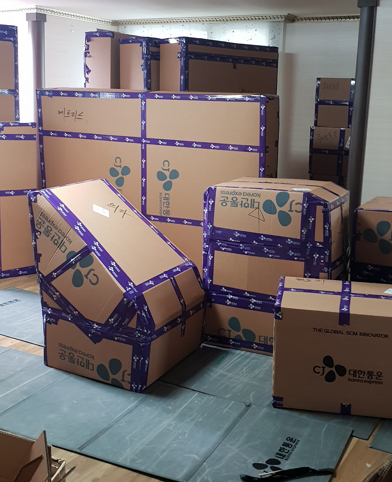한국의 짐들을 해외이사로 보냈습니다.