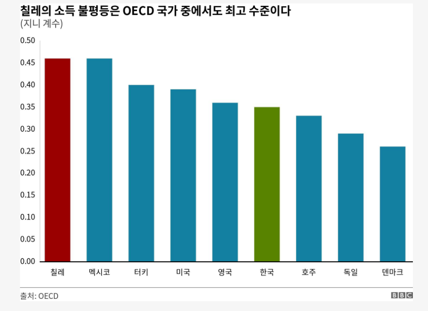 칠레소득 불평등이 OECD국가 중 최고 수준이라는 보고를 보면 더 이해가 갑니다.