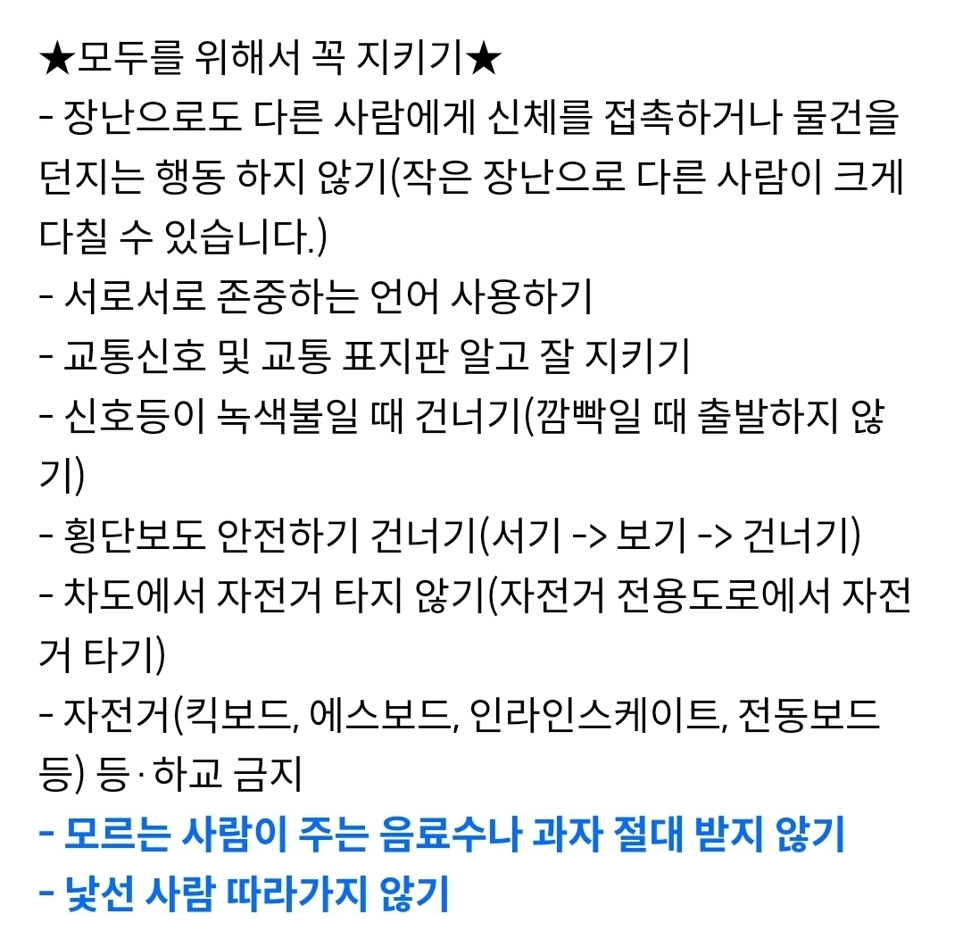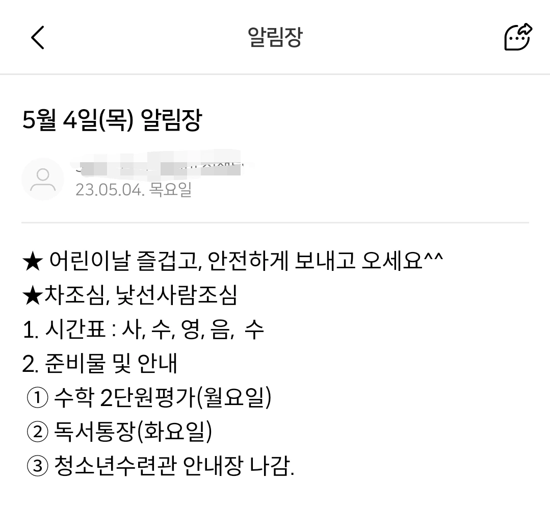 낯선 사람 조심, 모르는 사람이 주는 음료수나 과자 절대 받지 않기가 고정문구가 된 요즘 알림장.