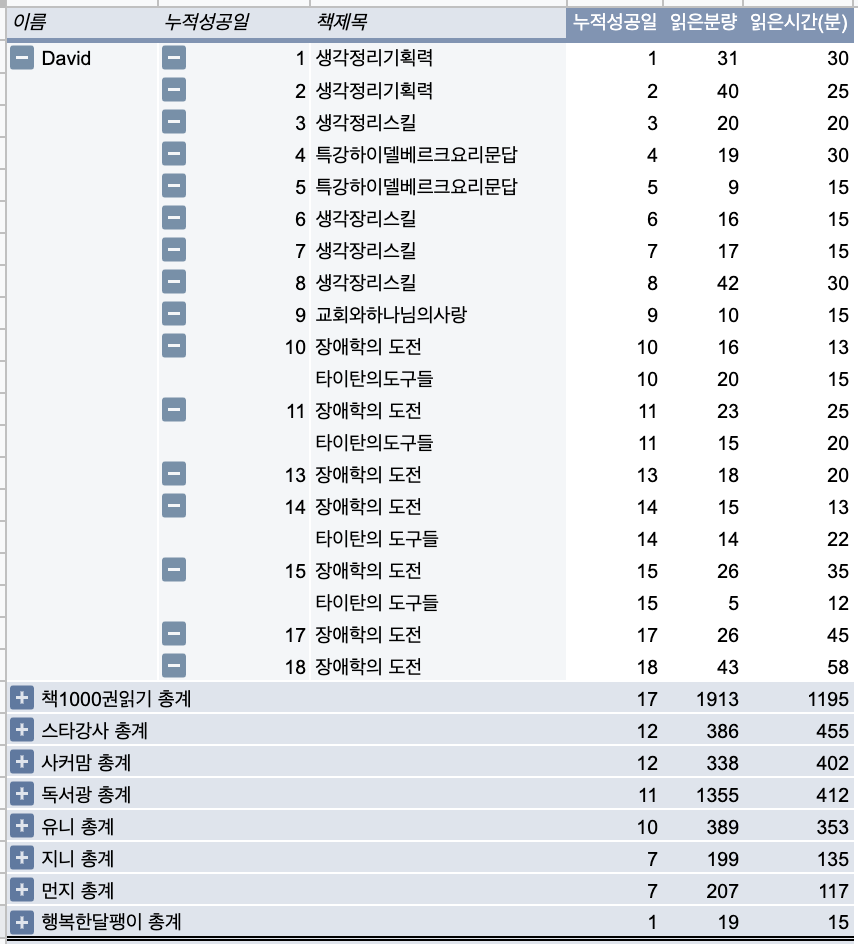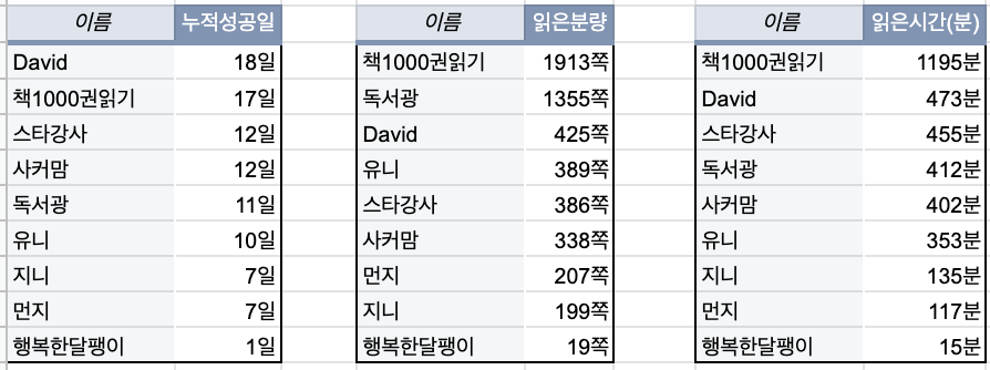20일 간 함께 책을 읽어간 분들의 성과(?)를 공유해 보겠다.