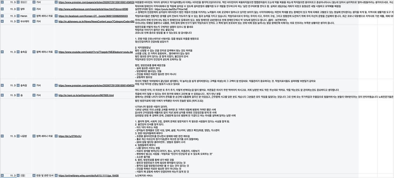 거창하게 세미나라고 이름을 붙였지만 4주 동안 읽어 본 자료들을 멤버들과 종합해보는 시간을 가지려고 한다. 꾸준히 읽어낸 자료의 주제를 다시 보면 내가 관심을 갖고 있는 영역이 어디인지 보일 것이다. 그 자료들을 하나의 맥을 잡고 묶어보고 요약해보는 기회를 갖는 것이다. 여기에 줌 라이브를 통해 멤버들의 의견을 덪붙힐 수 있다면 내 관심 분야에 대한 탄탄한 지식을 한층 더 쌓아 올리게 될 것이다. 이렇게 우리는 어제보다 더 성장하는 치료사가 될 것이고 사회와 현장을 함께 읽어 낼 수 있는 보는 눈을 키워가게 될 것이다.