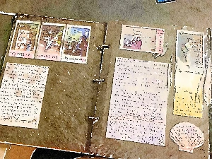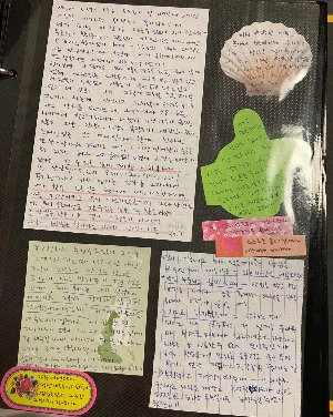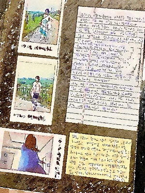 이야기하고 싶은 주제를 정한다. 내가 생각하는 행복, 나의 가족, 나의 친구들 여러 주제를 적고 쓴다. 나는 메모지에 썼다. 한계가 없는 컴퓨터 A4 화면보다 작은 쪽지에 쓰게 되니 좀 더 내용도 함축적이 되고 부담도 적다. 그런 쪽지들은 스크랩북에 붙인다.