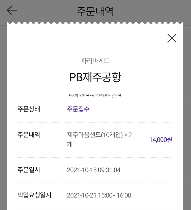 제주 마음 샌드 2개, 예약, 성공적.
