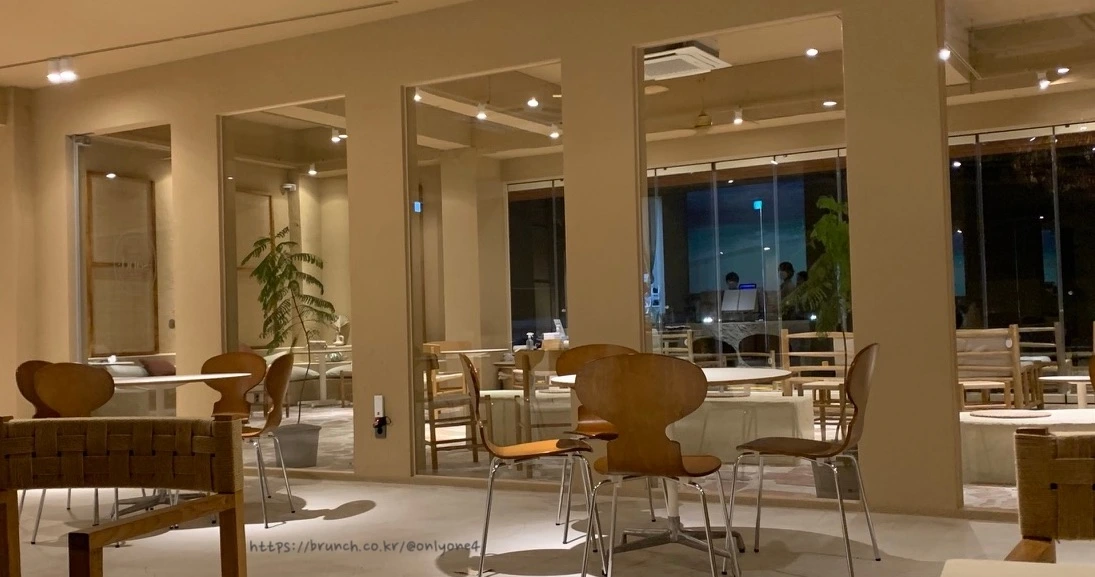 밖에서 보고 '뭐여 호텔이 뭐 이리 훤해.' 싶었는데 자세히 보니 호텔이 아니라 카페였다. 나는 대체 뭘 조사한 거지...? 철저한 계획파인 나는 촉박한 시간에도 불구하고 협재 해변 상점에 대해 열심히 조사를 했는데, 막상 가보니 '난 여기 어디여?' 싶은 상황들이 많이 벌어졌다.