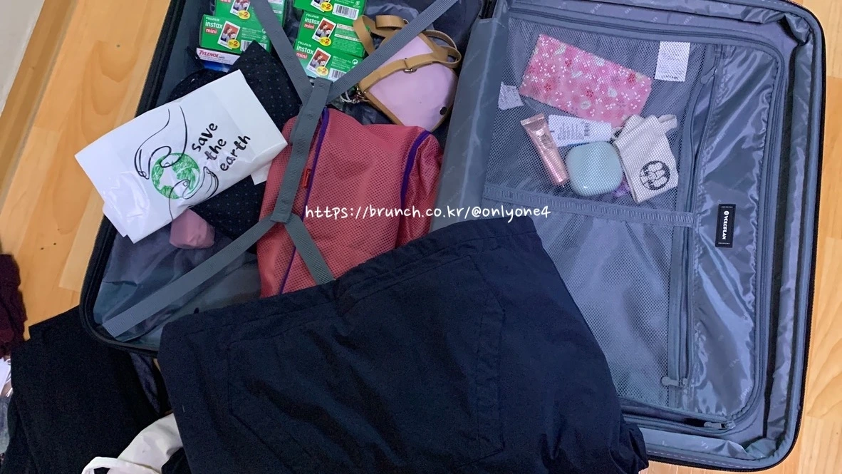 필요한 거 빼고 다 챙겨 온 나의 캐리어.
