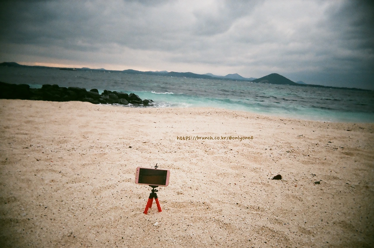 그래서 셀카봉, 삼각대 없이 협재 해변 구석에 홀로 앉아 청승을 떨고 있었다.