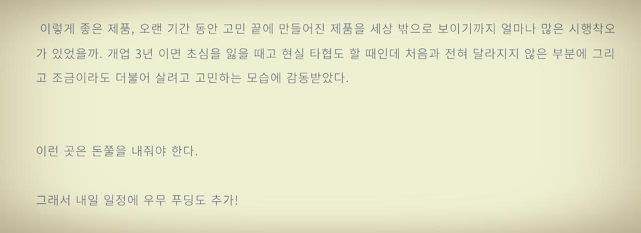 전 날 새치기를 하고도 뻔뻔하게 이곳에 재방문하려는 이유는 난 지금 어디여 #15 온기가 필요해에 나와있듯 이들의 제품이 제주 해녀들이 채집하는 '우뭇가사리'로 푸딩을 만든다는 이유도 있지만, 환경오염을 줄이고 제주 지역 특산물을 이용해 더불어 사는 기업을 만들겠다는 그들의 경영철학에 감명을 받았기 때문이다.