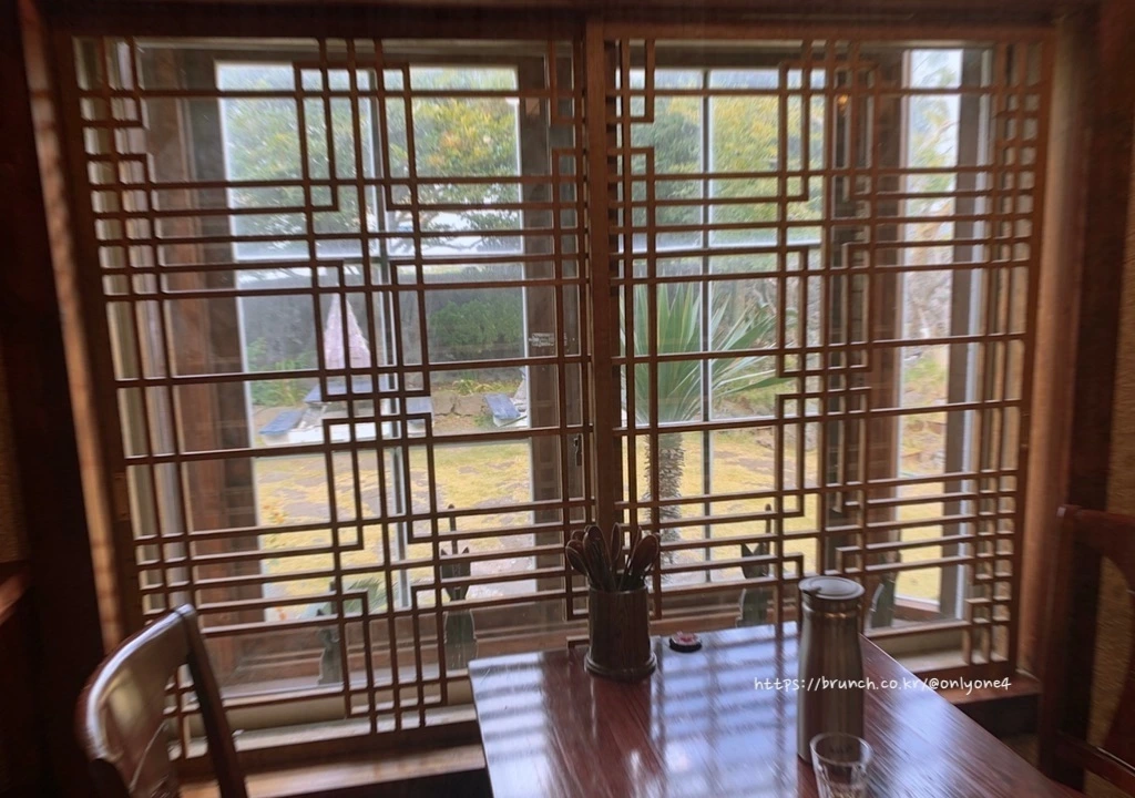 조용한 분위기에서 창 밖을 보며 먹는 점심.
