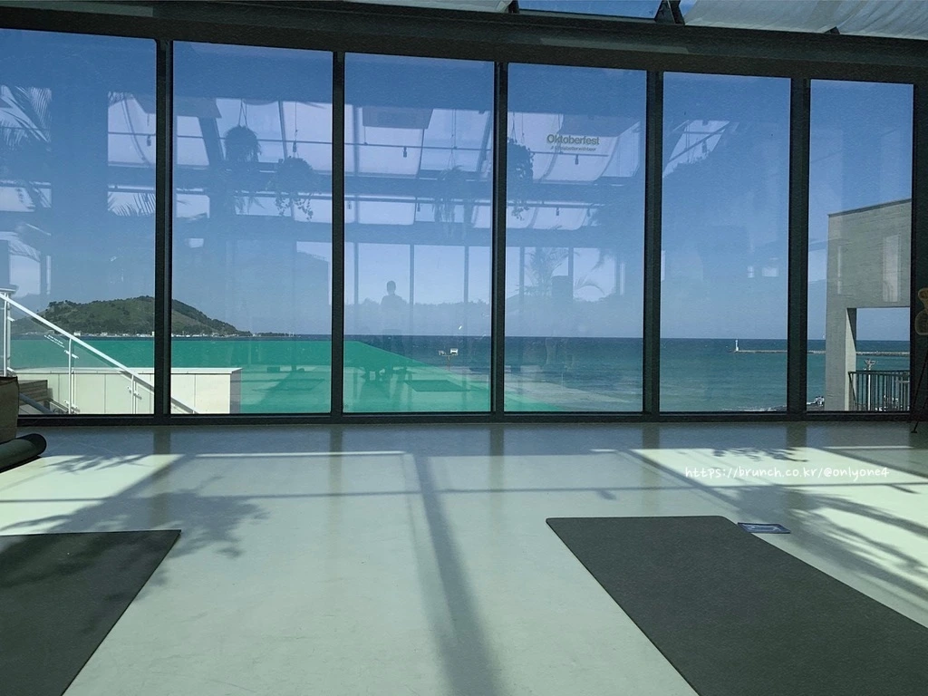 게다가 요가 수업이 진행되는 3층은 전면 통유리로 되어있어 햇살이 온전히 쏟아지는 형국.