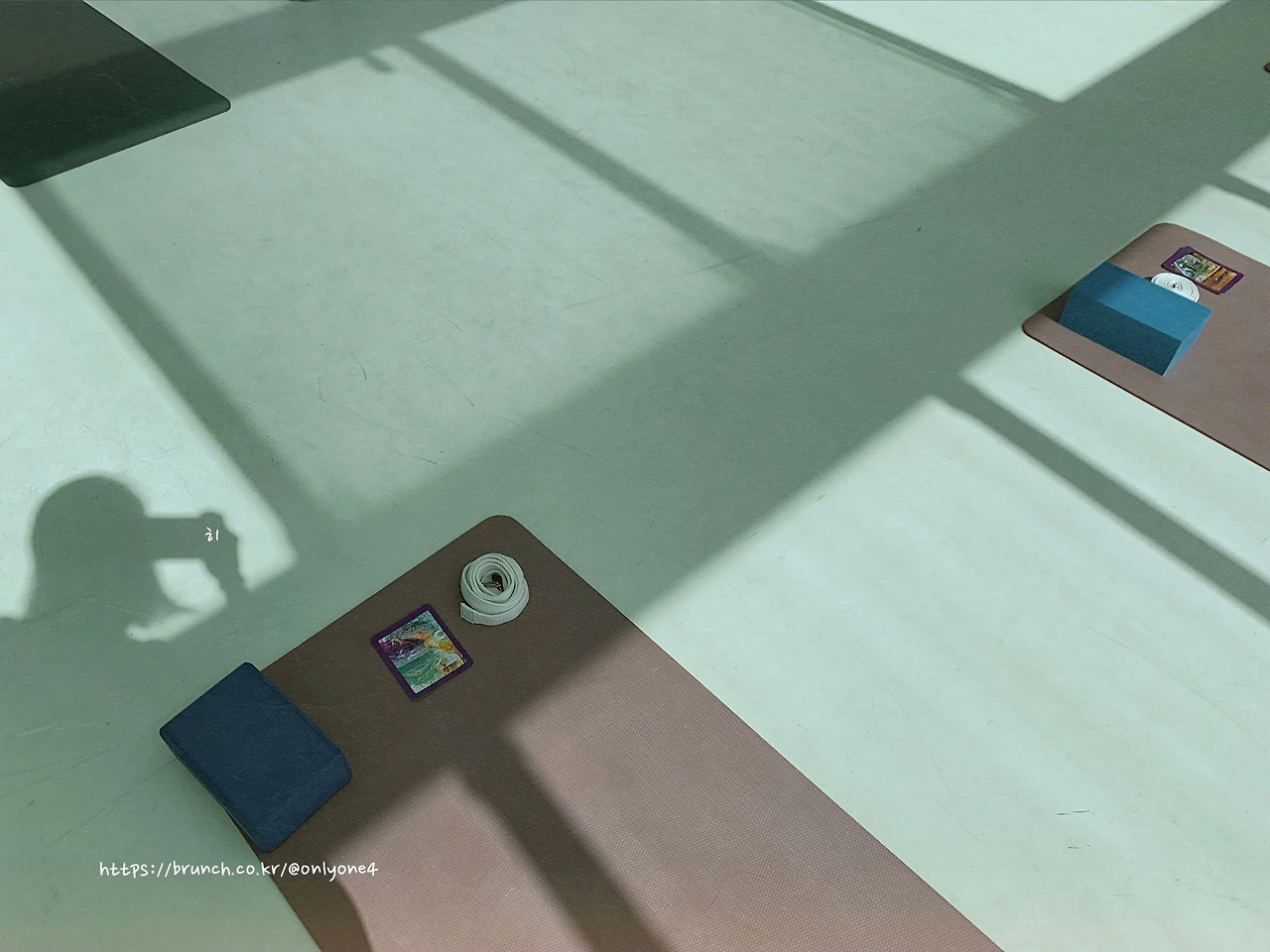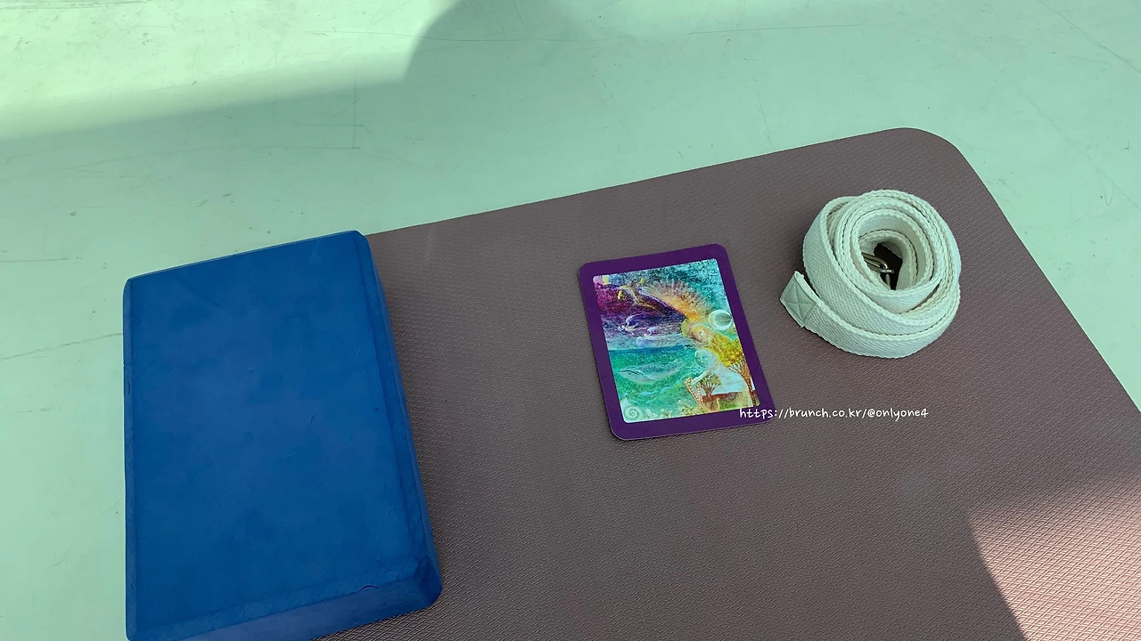 매트 위엔 블록과 요가 벨트가 준비되어 있었다.