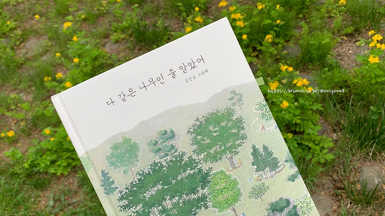<다 같은 나무인 줄 알았어>의 겉표지엔 제목 그대로 생김새가 다른 나무들이 그려져 있다.