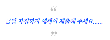 근데 수업을 들은 아이들 절반 가까이가 에세이를 제출하지 않아 다음날 국어 수업 시간에 아이들에게 에세이를 제출하지 않은 아이들에게 이유를 물었답니다.