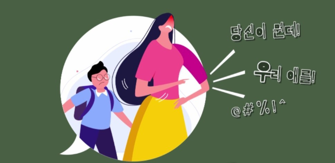 - 점심시간에 운동장에 두 아이가 싸웠는데 담임교사가 무능해서 발견못했다고 아동학대로 신고하겠다.