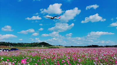 이곳 영종도는 자전거 도로가 잘 갖춰져있어 편리하다. 한낮의 뜨거운 열기가 식은 여름 저녁, 서둘러 밥을 먹고 다섯 식구 자전거를 타고 해안가 공원을 한 바퀴 도는 게 일상이었다. 가을엔 분홍과 하얀, 진분홍 빛 코스모스가 끝없이 펼쳐진 공원도 자주 갔다. 인천공항 1 터미널 근처로 코스모스 밭을 배경으로 착륙하는 비행기를 손으로 잡는 것 같은 사진 찍는 게 유행이기도 했다.
