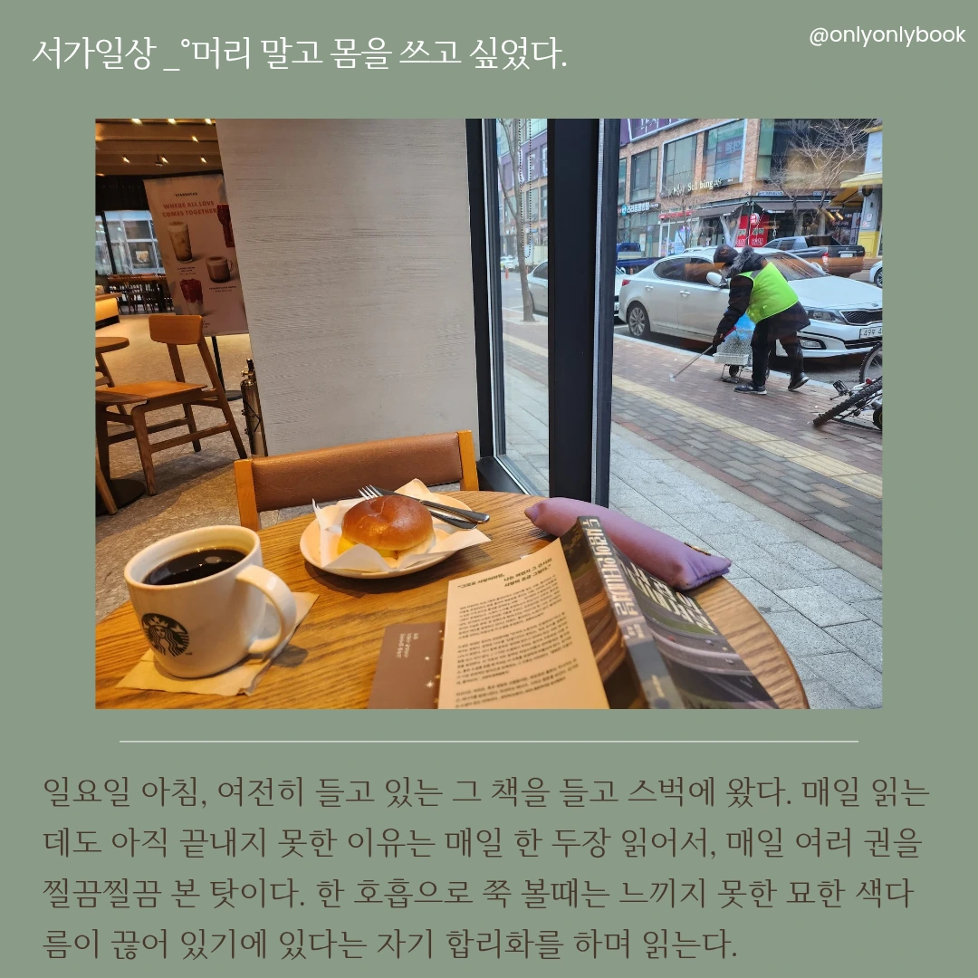 하루의 대부분을 고정된 거북목 자세로 보내다 점심 먹고 20분도 안 되는 산책에 모든 고충과 스트레스를 털어내는 삶. 이게 최선이라고, 모든 직장인이 그리 산다고 만족해하며 살았다.