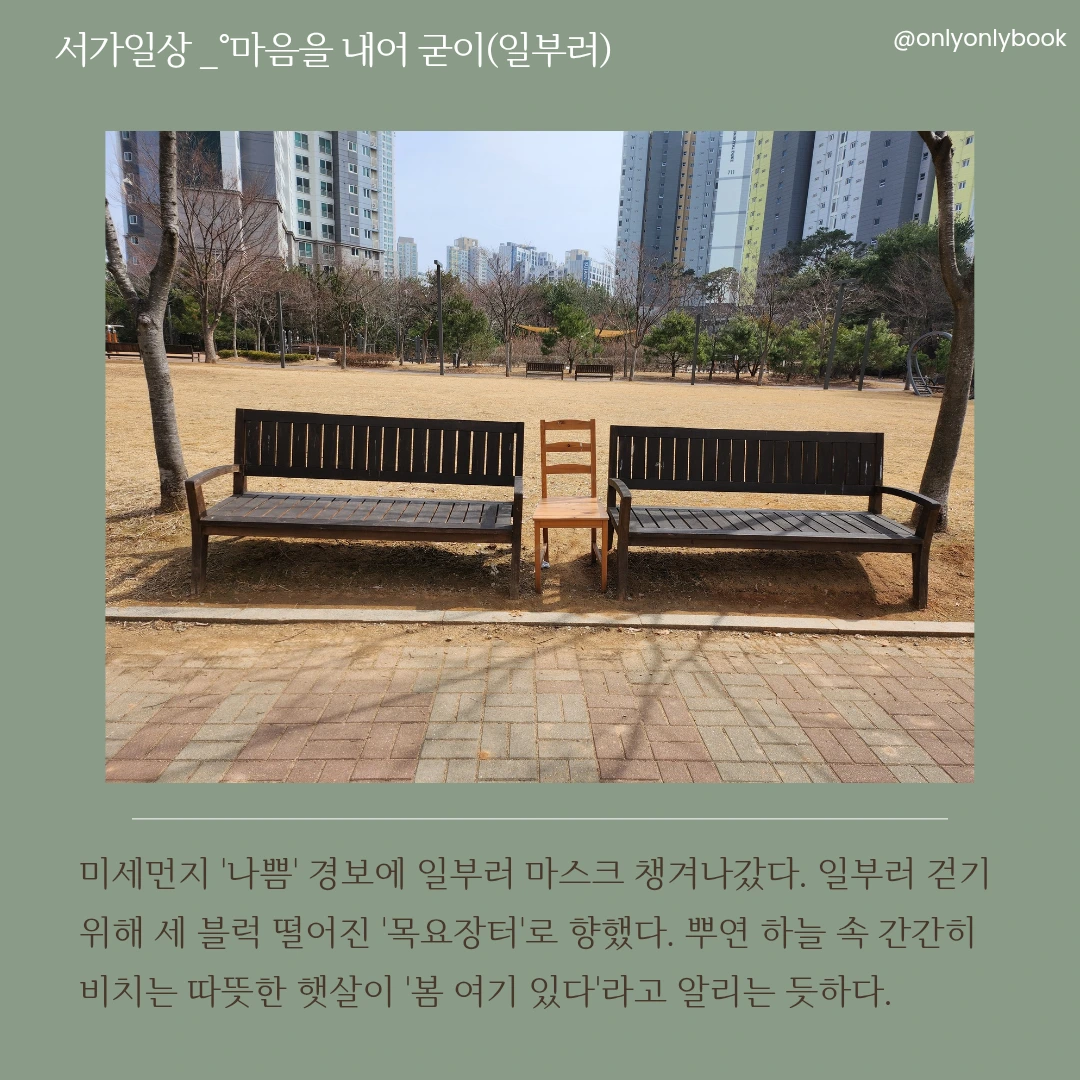 마음을 내어 걷는다. 어제처럼 오늘도 미세먼지 가득한 하늘은 뿌옇고, 노랗고, 불투명해 시야가 좋지 않다.