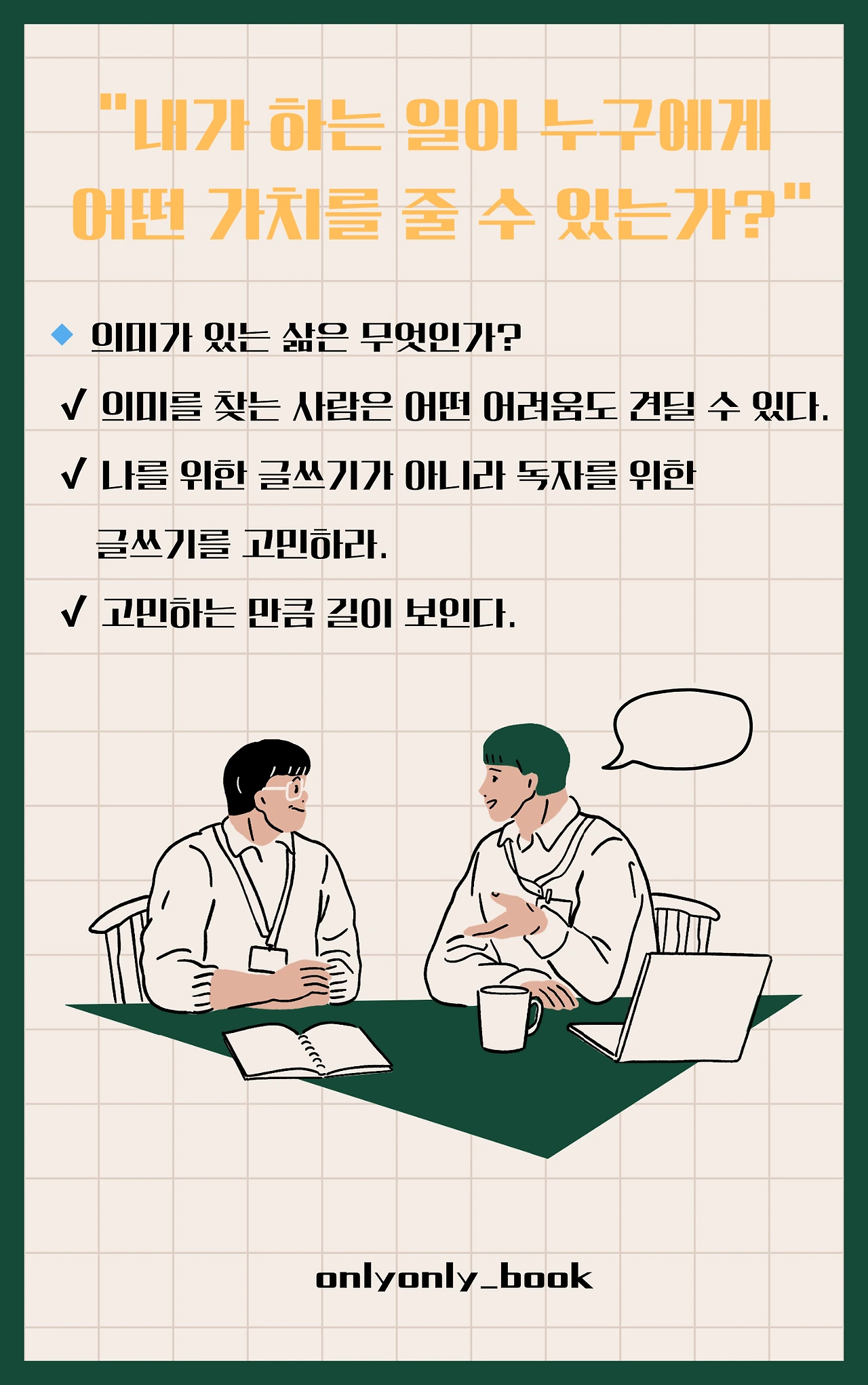 매일 읽고, 쓰는 삶을 사는 오직서가입니다. <엄마에서 나로,리부트> , <은정씨의 수상한 독서모임> 책 출간했습니다. 나의 이야기가 단 한 사람의 마음에 가 닿기를 희망합니다.