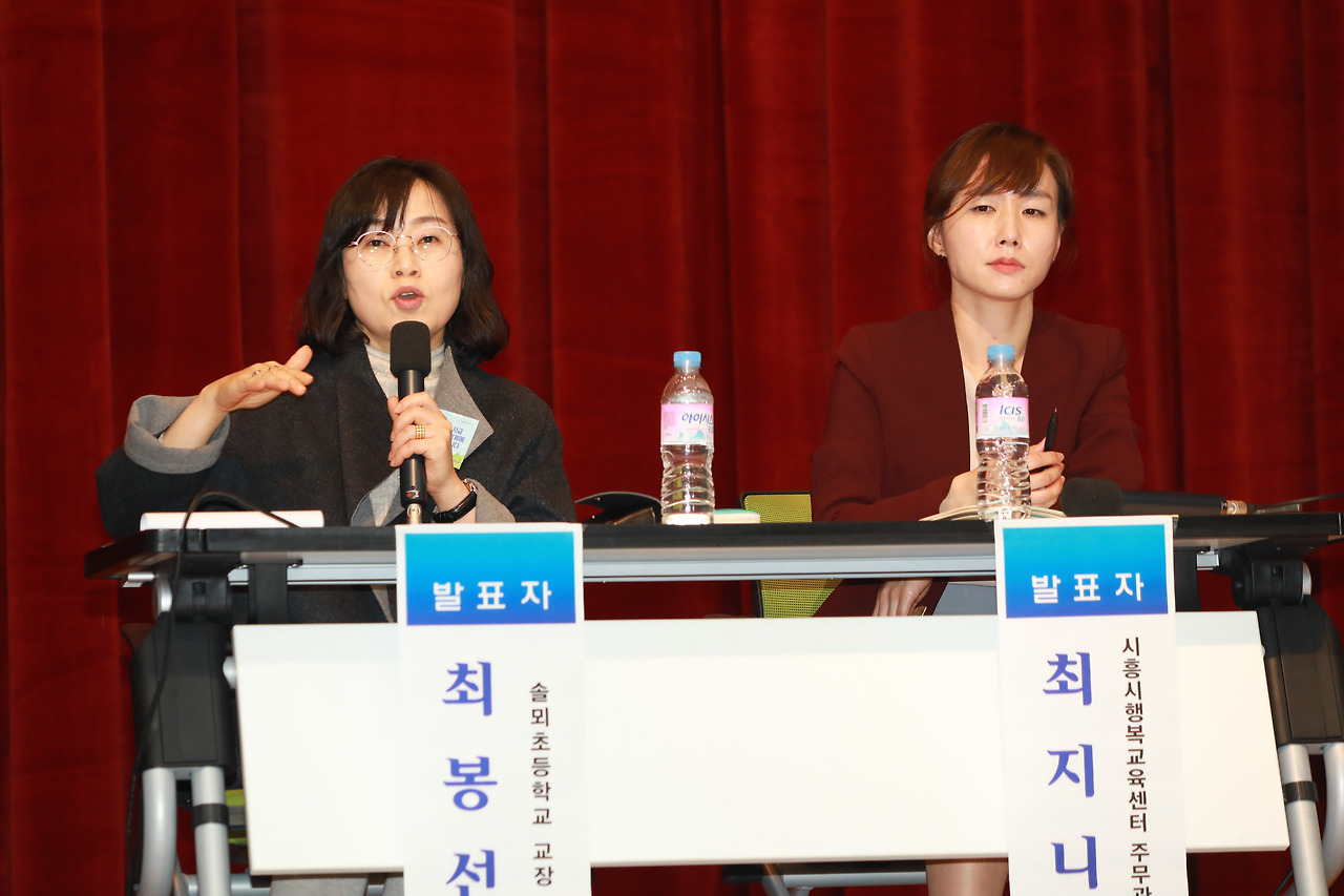 최지니 : 저는 초1, 중1 아이를 키우고 있는데 처음에는 서울에서 출퇴근만 하면서 사실 시흥 시민이라는 의식이 없었는데 지난 5년간 교육청소년과에서 근무하면서 사람들을 직접 만나고 선생님들과 소통하면서 시흥에서 펼쳐지는 다양한 배움터를 방문하게 되었고, 드러나지 않는 교육적 노고와 열정에 감동을 받게 되면서 시흥시민으로서 비로소 정착하게 되었다. 지금 우리 첫째는 헤어디자이너를 꿈꾸고 있는데 그 부분을 키워줄 시흥에 있는 다양한 배움터를 알고 있기에 우리 아이를 시흥아이로 키우는 게 당연하고 다른 지역에서 키우겠다는 생각을 하지 않는다. 저는 일하면서 감동을 중시하는데 행복교육지원센터의 행정가로서 일을 하면서 ’지원‘하는 입장이 아니라 교육활동에 전념하는 지역에 ’부탁‘을 하는 것이라고 생각한다. 우리는 마을에서 치열하게 자기 자리에서 제 역할을 해내는 그분들에게 부탁하는 입장일 수밖에 없다. 하나의 바람이 있다면 내 아이도 시흥아이로 자라 적당히 벌어서 행복하게 살면 좋겠다는 생각을 하고 있다.