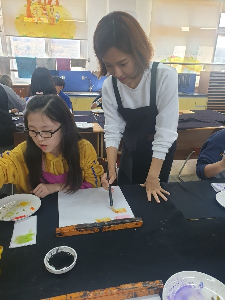 A. 작은 예로 제가 오늘 수묵화 수업을 했는데요. 예전에도 수묵화 수업을 한 적이 있었는데 그때 했던 수업과 오늘 한 수업이 달랐어요. 예전에는 아이들이 삼묵을 구현해서 먹 꽃을 예쁘게 만들어서 자기 이름을 쓸 수 없을 것이라고 생각했어요. 삼묵을 만들기 어려울 것이라고 생각했고, 그때 당시에 동 학년 선생님들도 3, 4학년은 삼묵이 어려우니깐 그냥 화선지에 붓 펜으로 따라 그리기하고 채색을 하자고 하셔서 그 정도의 수업을 했어요. 그런데 이번에는 수묵화 수업을 하기 전에 동 학년 선생님들이 다 모여서 같이 그려봤어요. 수묵화 잘 그리는 선생님께 물어보고 영상 찾아보기도 하고. 그렇게 연구를 하고 오늘 아이들과 수업을 했는데 아이들이 삼묵을 너무 잘하는 거예요. 아이들이 삼묵을 찍는 것을 보면서 교사가 끊임없이 연구하고, 지평이 넓어지면 거기에 맞는 또 다른 교육을 할 수 있다는 생각이 들었습니다. 이것이 작은 예지만 무서운 것이 계속 이런 경험이 쌓이잖아요. 인생을 통틀어서 계속 쌓이다 보면 큰 차이가 만들어질 것 같아요.