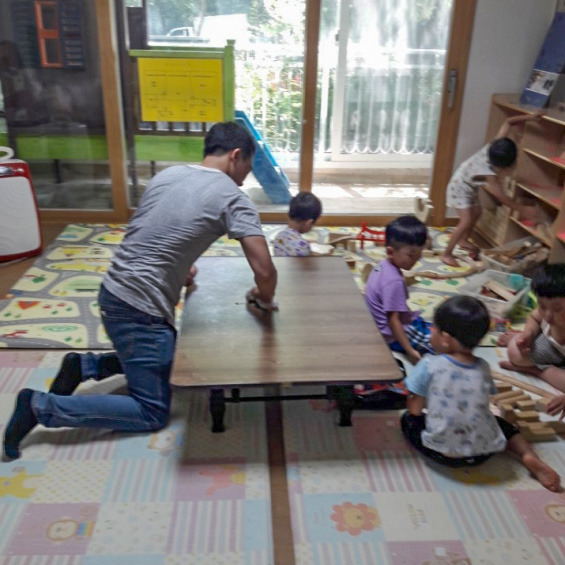 터전에서 그날의 영양 아마(방울)께서 맛있게 요리해주신 점심을 먹으려고 준비를 하는데 친구들이 서로 도와주겠다면서 나서서 도왔다. 이런 작은 것에도 감동. 맛있게 점심을 다 먹고 체력을 보충하기 위한 낮잠을 자려고 나와 오리는 솔찬방, 누리찬방 친구들을 재우러 들어갔다. 달님은 나라찬방 친구들을 재우러 방을 들어갔는데 나와 오리는 아이들과 함께 스르륵 잠에 빠져버렸다.