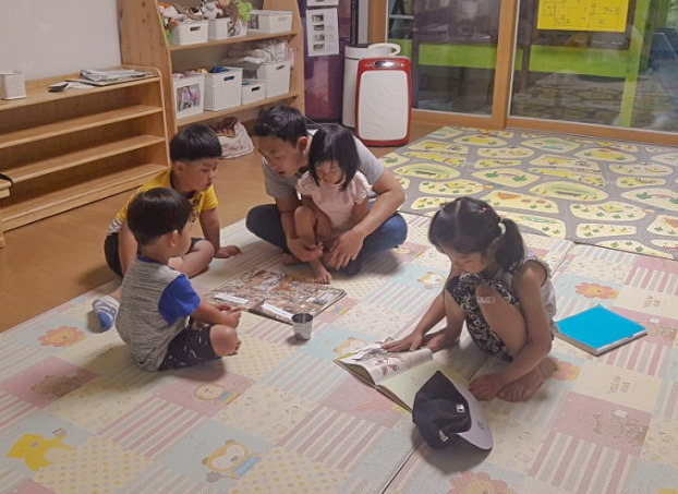 드디어 D-DAY! 일찍 등원하는 아이들이 있어서 다른 아마 분들보다 터전에 일찍 와 아이들은 반겨주는 역할을 맡았다. 살짝 긴장했는데 아이들이 먼저 나를 반겨줘서 긴장이 자연스럽게 풀렸다. 아침에 일찍 등원하여 집에서 밥을 못 먹은 아이들은 도시락을 싸와서 먹고 아침 먹고 등원한 친구들은 책도 읽어 주면서 같이 놀고 있는데. 든든한 지원군 달님께서 출동. 너무너무 반가웠지만 조금 서먹해서 인사만 하고 다시 아이들과 몸 놀이로 화제 전환. 곧이어 다음 지원군 오리도 출동~ 오리는 한 번이었지만 대청소 때 밥도 같이 먹고 가족끼리 꽃구경하러 나들이도 다녀와서인지 서먹하진 않은 사이였다. (혼자만의 생각인가?) 그래서 야호, 이제 비로소 안도.