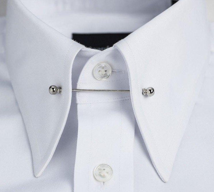 핀 칼라는 남성복의 황금기였던, 1930년대 엄청난 트렌드였다. 하지만 지금은 슈트계의 패피들이 아니면 보기 힘든 형태이기도 하다. 핀 칼라는 모든 칼라의 형태에 적용해도 무방하다. 기본적으로 칼라 포인트 쪽에 작은 홀이 있다. 이 홀을 통해 핀이나 바를 찔러 넣는 형태다. 반드시 타이 노트를 핀 혹은 바 위로 올려놓는다. 핀 칼라의 목적은 타이 노트를 위로 끌어올려 타이 노트의 뒷부분이 칼라의 틈새로 보이지 않도록 하는 역할을 한다. 이는 기품 있고 위용 있는 룩을 연출하기에 매우 적합하다. 고전적이면서도 세련되고 품위 있는 룩을 연출하고 싶다면 핀 칼라를 적극 추천하다. 핀 칼라는 반드시 타이를 착용해야 함을 잊지 말자. 핀 혹은 바는 타이를 위해 존재한다.