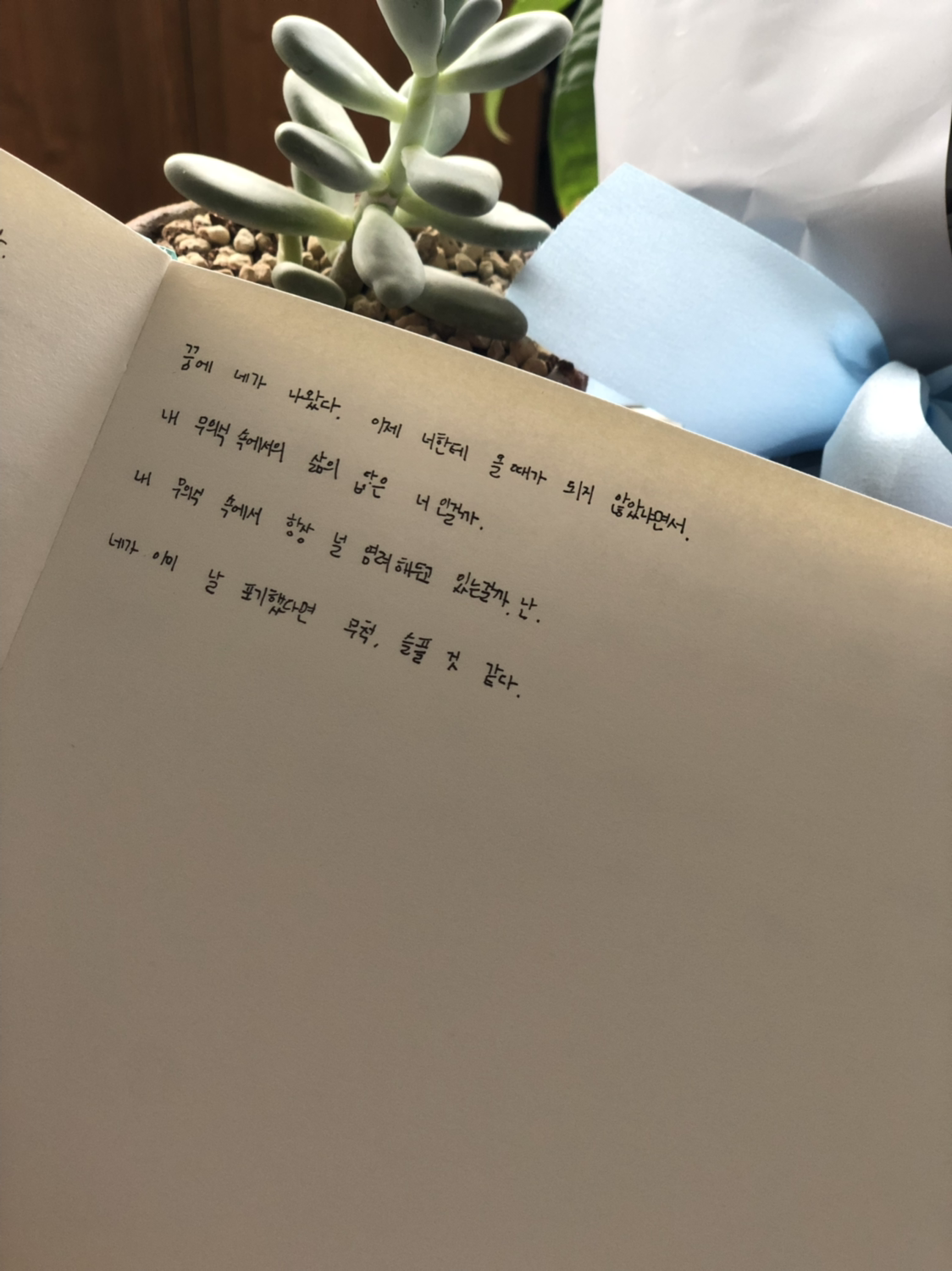 아무렇지 않게, 담담하게, 고요한 그 눈동자 안에 무수한 감정을 내비치면서 넌 꿈속에 나와 그렇게 말했다.