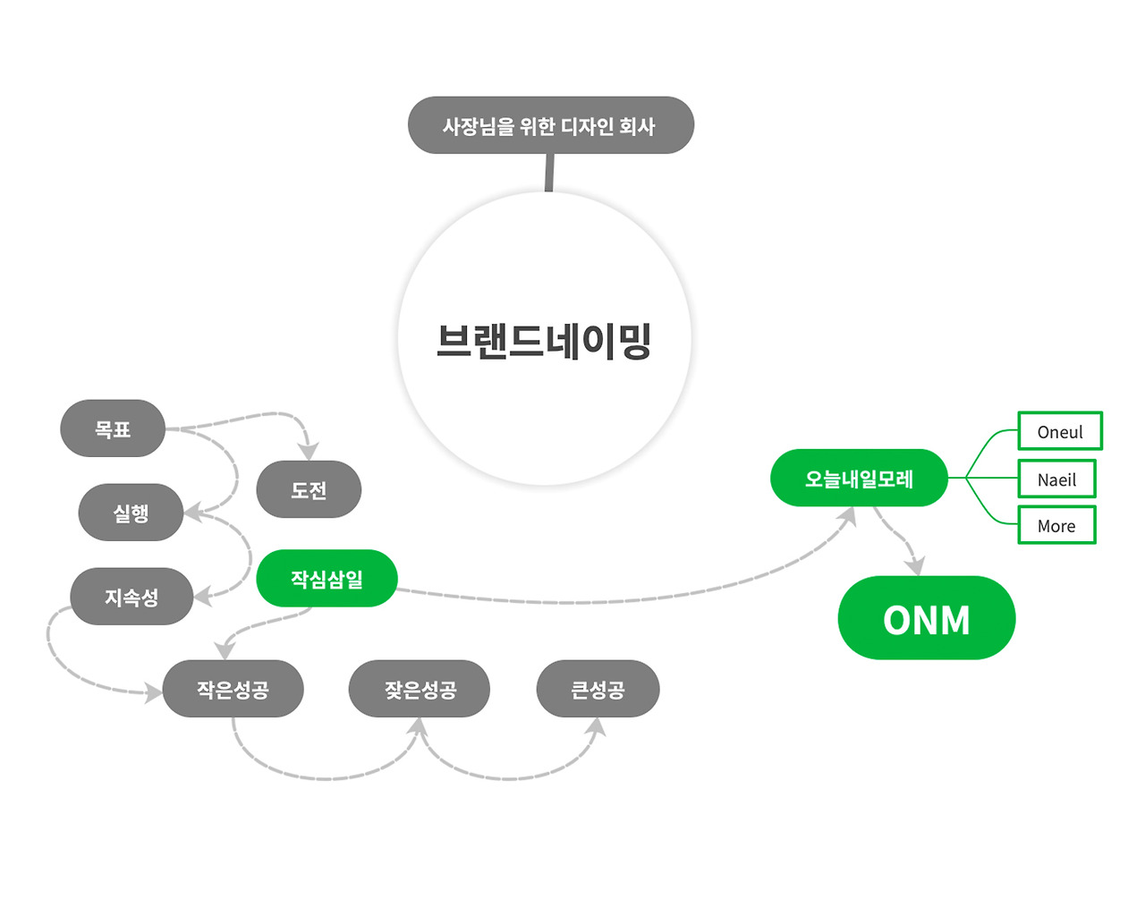 왜 오내모웍스인지, 궁금함이 생기게 하는 네이밍과 어렵지 않은 발음. 시각적으로도 읽기 쉬운 우리만의 브랜드 네임이 완성되었다.