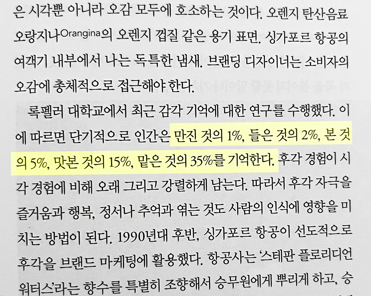사람들은 만진 것에 1퍼센트, 들은 것에 2퍼센트, 본 것에 5퍼센트, 맛본 것에 15퍼센트, 맡은 것에 35퍼센트를 기억한다고 한다. 보는 것으로 한정되어 있던 마케팅을 넘어, 직접 체험하는 감각 마케팅이 중요해진 시대가 왔다.
