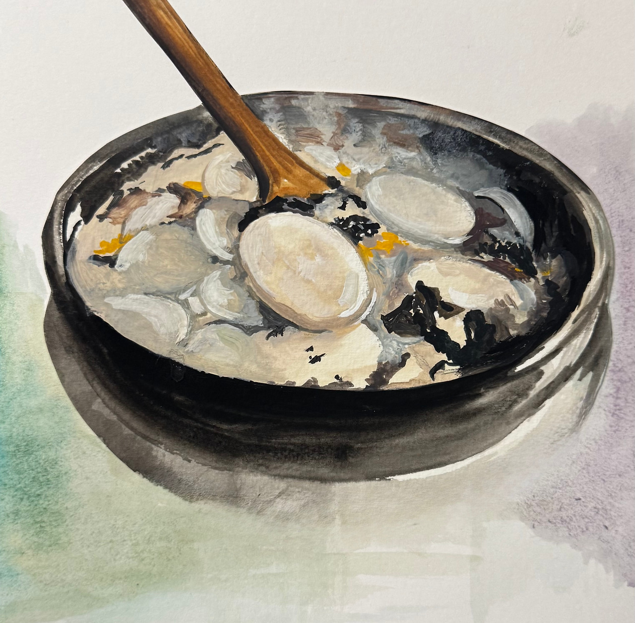 엄마의 떡국, 종이에 과슈, 2025 수지리