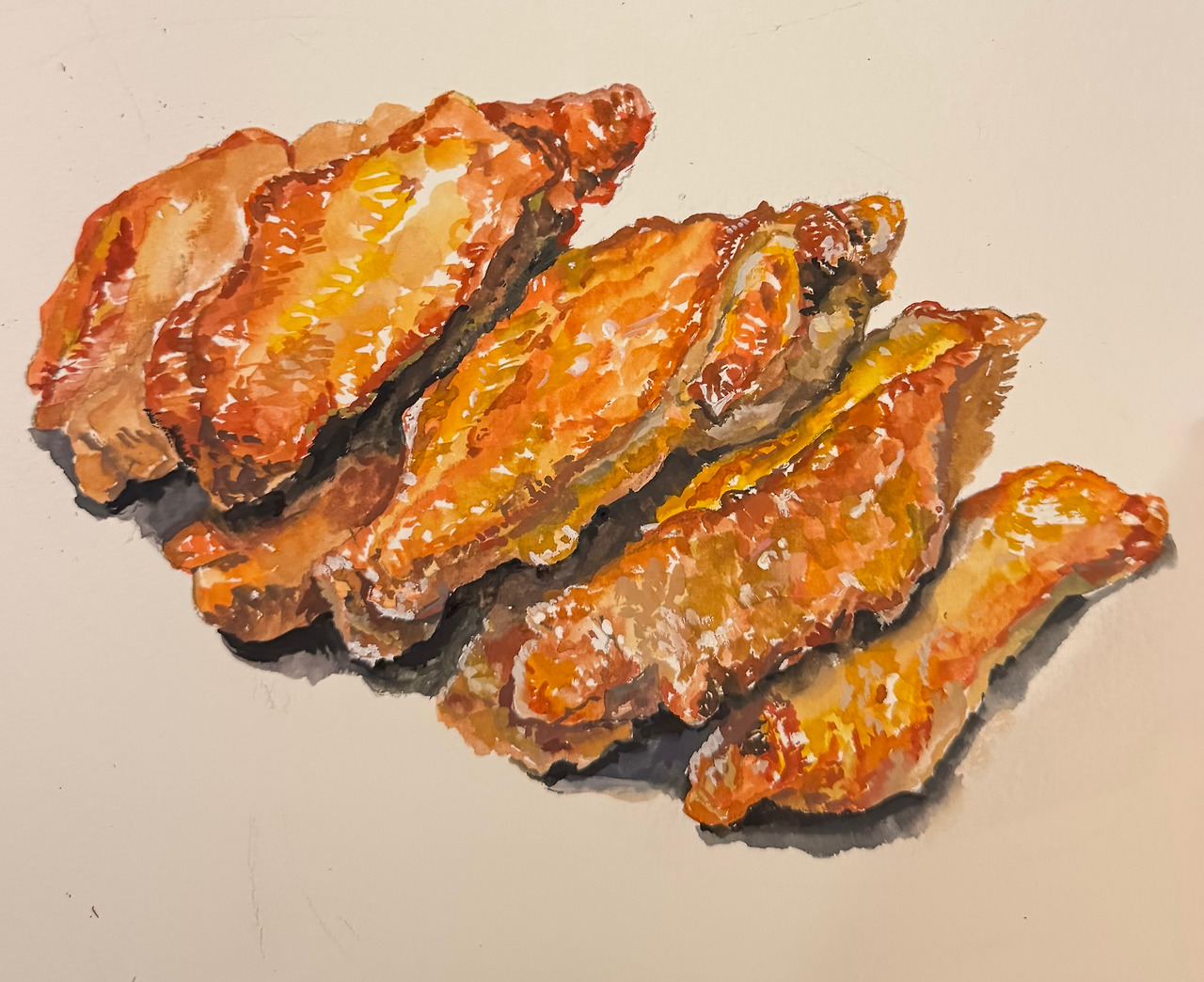 엄마의 닭날개, 종이에 과슈, 수지리 2025