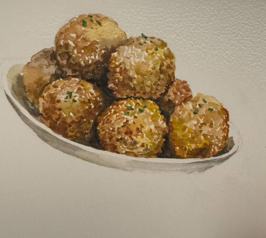 감자 고로케, 종이에 과슈, 2025 수지리