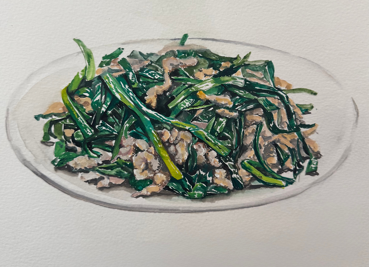 부추잡채, 종이에 과슈, 2025 수지리