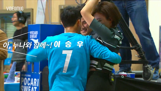 자선 경기는 승리만을 위한 경기가 아니기 때문에 세리머니로 경기에 재미를 더하는 경우가 많다. 이 날 경기에서도 선수들은 복면 가왕 세리머니, 야구 세리머니 등 다양한 세리머니를 보여주며 관중들을 즐겁게 했다. 이승우 선수 또한 눈에 띄는 세리머니를 준비했다. 골을 넣은 뒤 정지원 아나운서와 함께 댄싱 및 뽀뽀 세리머니를 보인 것이다. 이승우 선수는 인터뷰에서 “골을 넣고 춤 파트너를 찾던 중 정지원 아나운서가 눈에 들어와서 같이 춤을 추게 되었다.”고 설명했다.
