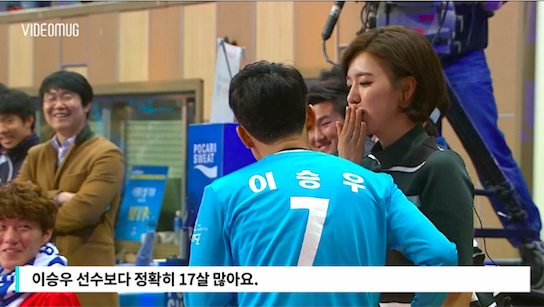 1. 한 남자 축구 선수가 경기 중 골을 넣었고 댄스 세리머니가 하고 싶어졌다. 그때 한 여자 아나운서가 눈에 보였고 함께 춤을 추기를 권했고 손 뽀뽀까지 받았다.